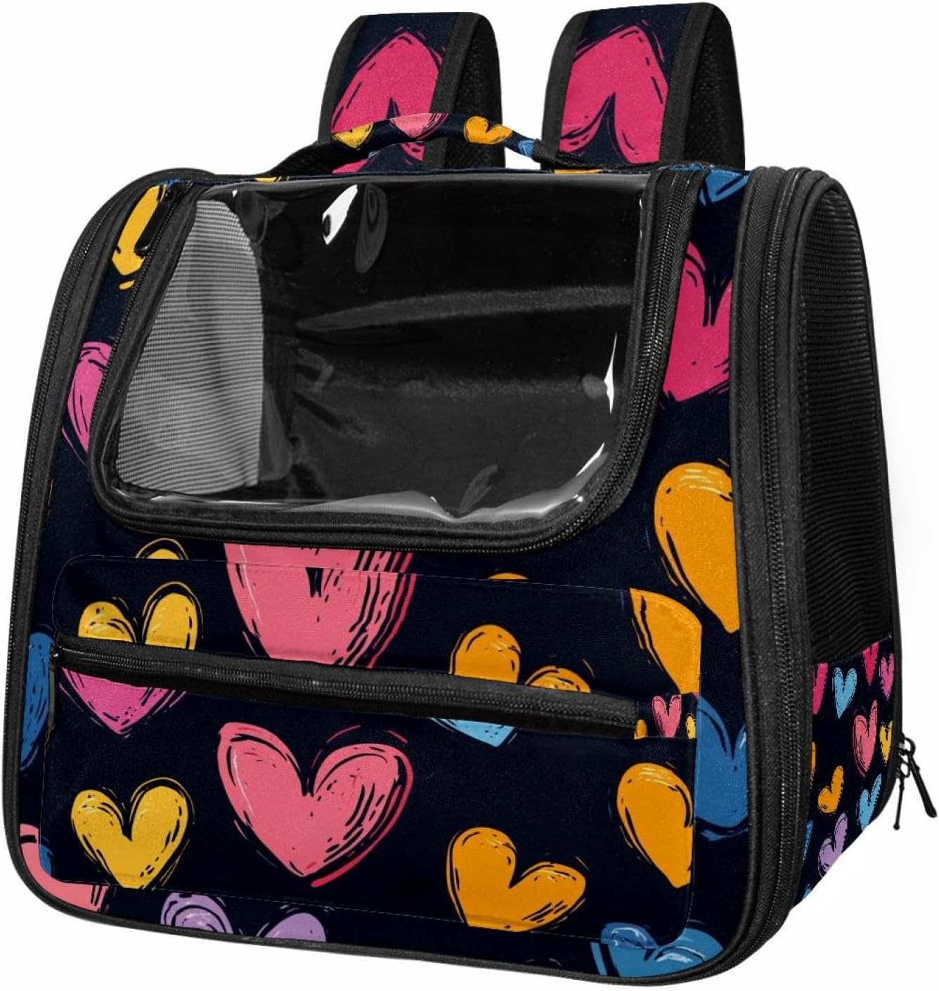 Well made: Cat Backpack Carrier is made from 900D oxford fabric, pp webbing, velvet, nylon, which is very sturdy, environmentally friendly and breathable. Not easily scratched by pet’s claws, pet backpack carrier is SAFETY & ANTI-SCRATCH. The back padding will give you a comfortable and breathable experience. Ventilated Backpack: With a breathable window in the front, this pet backpack allows cats to enjoy the sun without feeling stuffy. There are two side pockets and one big front pocket, and you can take foods or toy for your kitten pet. It is big enough for cat to turn around, and there are side pockets and hook holes, you will enjoy the greatest convenience when taking your cat out. Perfect size: Cat carrier is 15.75x9.84x13.78in/40x25x35cm. Fits most small/medium sized cat, dog, and pet. Quality fleece bed provide a comfortable place for your pet. Lightweight and easy to carry to all places. Built-in harnesses keep your naughty friends from escaping. Removable cosy mat for easier cleaning and let your pet enjoy it inside. Easy to carry: The adjustable shoulder strap of pet carrier bag help you hands-free carrying and makes it the most safe and convenient pet carrier bag for your travel. Seat belt design provide pets with safety protection throughout the trip. Pad protection keep your pets comfortable during travel. Unique Design: Innovative inside graphic design gives you a stereoscopic 3D visual experience. You also send us the photos you interest to make your unique dog or cat carrier. Pet bag is also a amazing gift for pet lover.