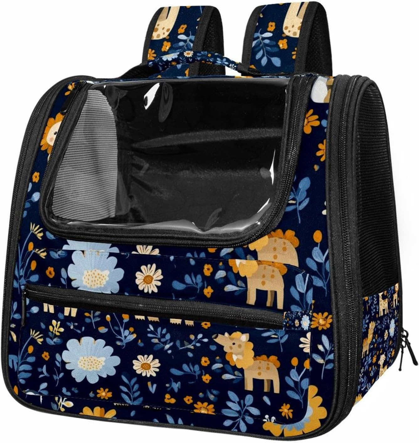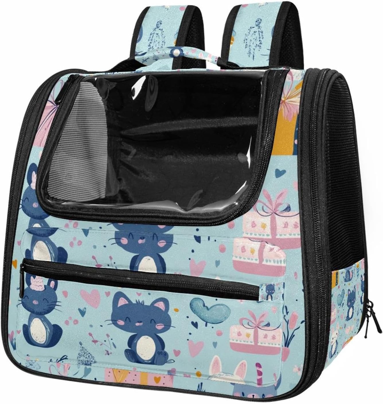 Well made: Cat Backpack Carrier is made from 900D oxford fabric, pp webbing, velvet, nylon, which is very sturdy, environmentally friendly and breathable. Not easily scratched by pet’s claws, pet backpack carrier is SAFETY & ANTI-SCRATCH. The back padding will give you a comfortable and breathable experience. Ventilated Backpack: With a breathable window in the front, this pet backpack allows cats to enjoy the sun without feeling stuffy. There are two side pockets and one big front pocket, and you can take foods or toy for your kitten pet. It is big enough for cat to turn around, and there are side pockets and hook holes, you will enjoy the greatest convenience when taking your cat out. Perfect size: Cat carrier is 15.75x9.84x13.78in/40x25x35cm. Fits most small/medium sized cat, dog, and pet. Quality fleece bed provide a comfortable place for your pet. Lightweight and easy to carry to all places. Built-in harnesses keep your naughty friends from escaping. Removable cosy mat for easier cleaning and let your pet enjoy it inside. Easy to carry: The adjustable shoulder strap of pet carrier bag help you hands-free carrying and makes it the most safe and convenient pet carrier bag for your travel. Seat belt design provide pets with safety protection throughout the trip. Pad protection keep your pets comfortable during travel. Unique Design: Innovative inside graphic design gives you a stereoscopic 3D visual experience. You also send us the photos you interest to make your unique dog or cat carrier. Pet bag is also a amazing gift for pet lover.