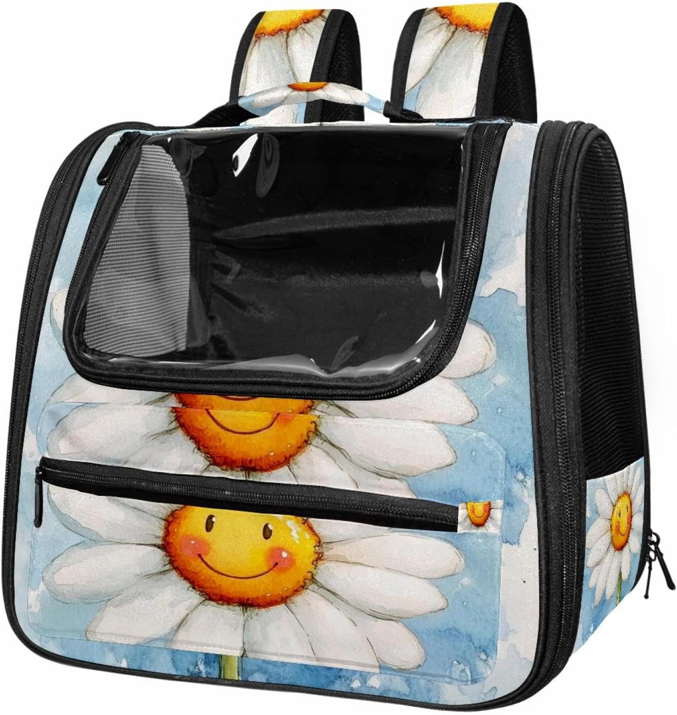 Well made: Cat Backpack Carrier is made from 900D oxford fabric, pp webbing, velvet, nylon, which is very sturdy, environmentally friendly and breathable. Not easily scratched by pet’s claws, pet backpack carrier is SAFETY & ANTI-SCRATCH. The back padding will give you a comfortable and breathable experience. Ventilated Backpack: With a breathable window in the front, this pet backpack allows cats to enjoy the sun without feeling stuffy. There are two side pockets and one big front pocket, and you can take foods or toy for your kitten pet. It is big enough for cat to turn around, and there are side pockets and hook holes, you will enjoy the greatest convenience when taking your cat out. Perfect size: Cat carrier is 15.75x9.84x13.78in/40x25x35cm. Fits most small/medium sized cat, dog, and pet. Quality fleece bed provide a comfortable place for your pet. Lightweight and easy to carry to all places. Built-in harnesses keep your naughty friends from escaping. Removable cosy mat for easier cleaning and let your pet enjoy it inside. Easy to carry: The adjustable shoulder strap of pet carrier bag help you hands-free carrying and makes it the most safe and convenient pet carrier bag for your travel. Seat belt design provide pets with safety protection throughout the trip. Pad protection keep your pets comfortable during travel. Unique Design: Innovative inside graphic design gives you a stereoscopic 3D visual experience. You also send us the photos you interest to make your unique dog or cat carrier. Pet bag is also a amazing gift for pet lover.