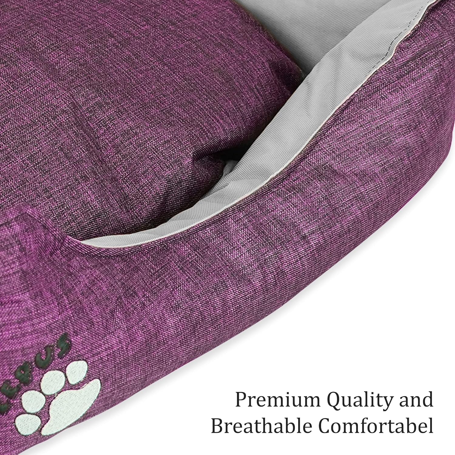 Are you looking for comforting, durable, and of perfect fit to your pet's size outdoor warming dog bed? Look no more - SUSSEXHOME Pets has the solution! Utilizing durable materials paired with skilled craftsmanship, our pet beds offer protection, support, and quality sleep while looking great anywhere outdoor. Advantages:Armed with quality features, our pet beds are fit for champions.Robust, heavy-duty polyester and PVC coated fabric with soft fillingRisen edges for warmth, support, and nest-feelA lowered side for ease of entryWater repellant and stain proofRemovable zippered coverBenefits:Our quality pet beds provide restful sleep for happier dogs. Soft, supportive cushion for a healthy beingCozy design for ultimate comfort and safetyUV rays protective for a skin condition and heat reliefWashable on cold cycle cover for pristine hygieneWipeable with a damp cloth for lighter stainsSizes & Colors Chart:Available Colors:Sage, Gray, PurpleAvailable Sizes:Small, Medium, Large, Extra Large