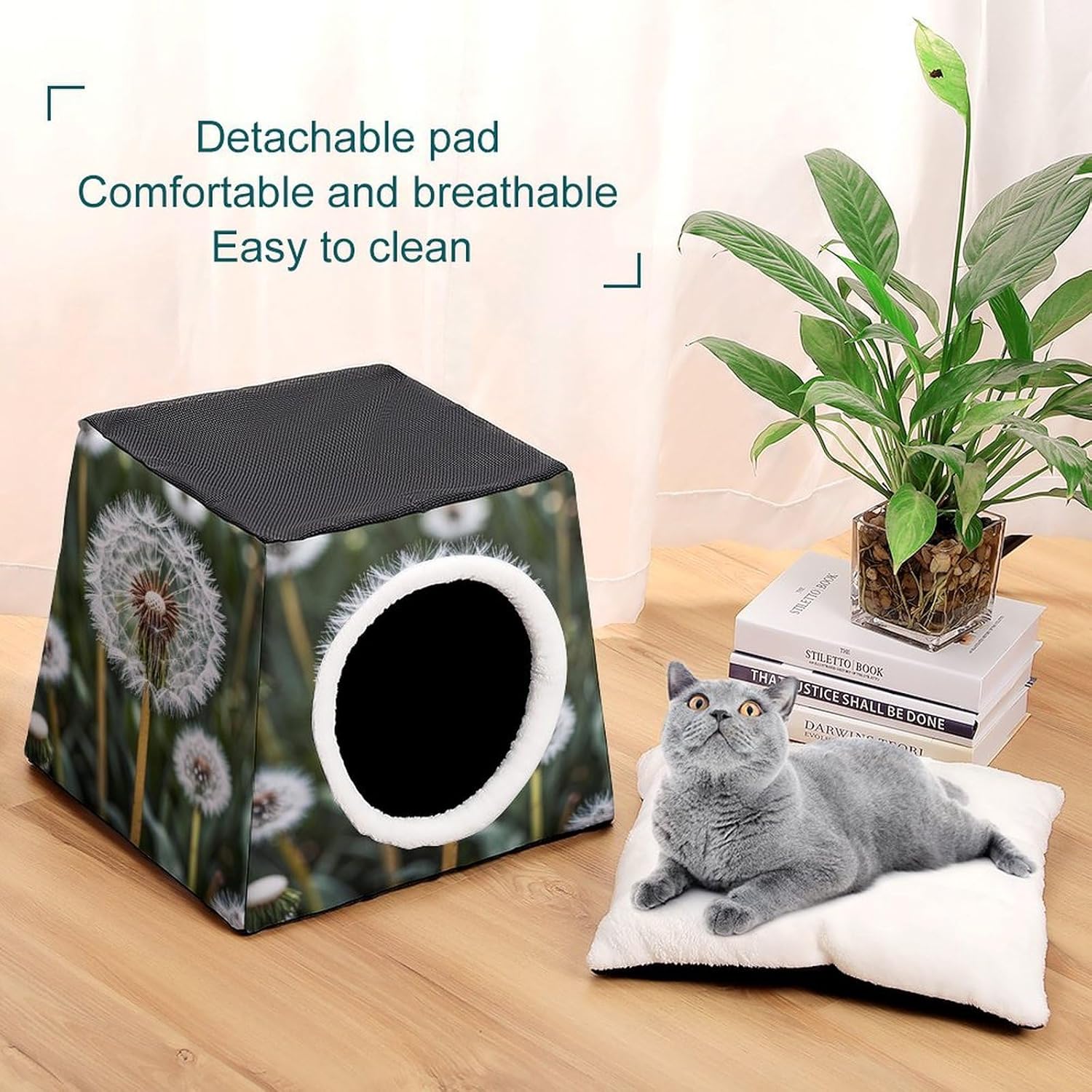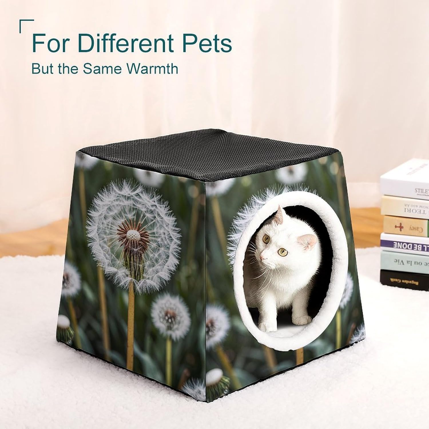 Portable Pet Nest Can Make Pets Sleep More Comfortably. Winter White Dandelion printed Dog Cave Bed Can Also Serve As A Decorative Element In Homes. The Mats At Winter Pet House Are Soft And Comfortable. The Spacious Design Of Warm Pet Cave Provides Ample Room For Small Animals To Stretch