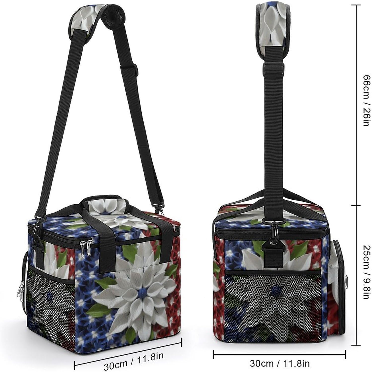 Versatile design: The America Patriotic Flower print travel cooler bag stylish, gender-neutral design is suitable for all ages and occasions, whether for work, gym, outdoor events, or travel.Perfect for every occasion: This insulated food bag is not just for camping, rugged cooler bag is an excellent choice for everyday use, such as meal prep, lunch at work, grocery shopping, and more.Space-Saving design: The stand-up structure of the outdoor lifestyle bag saves space and makes it easy to store when not in use, insulated grocery bag perfect for compact packing.Machine washable: The reusable lunch bag is easy to maintain, food organizer bag is washable, but avoid prolonged soaking or bleaching to preserve its quality.