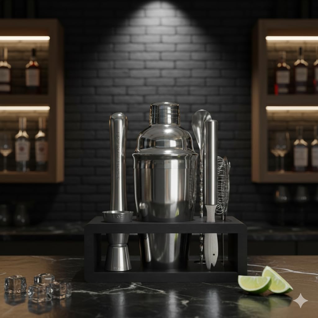 | Included Components | Jigger, Shaker, Muddler, Bar Spoon, Strainer, Bamboo Stand |