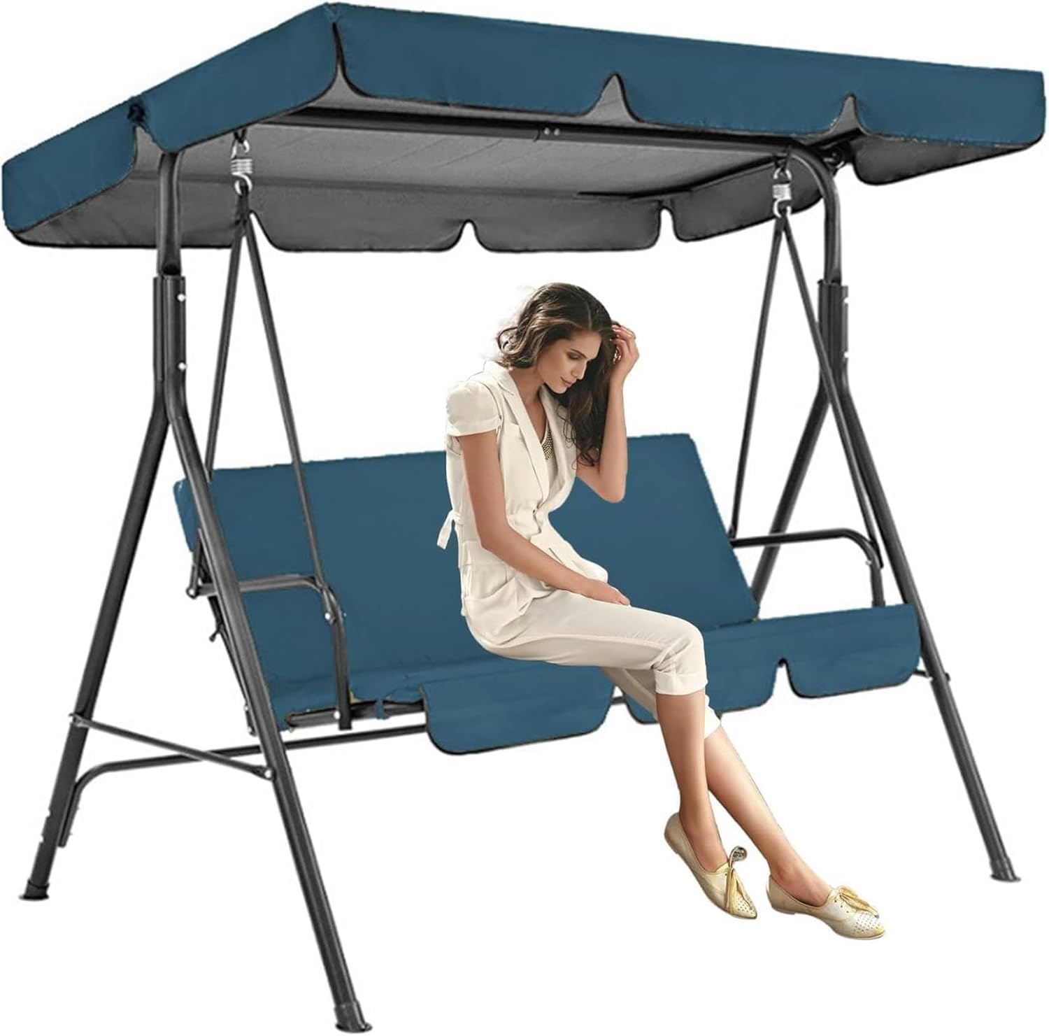 Patio Swing Canopy Replacement Top Cover, Replacement Cover for Swing Canopy, Garden Seater Sun Shade Porch Swing Hammock Protector Furniture CoverProduct description:The replacement swing canopy cover is made of high-quality waterproof 210D silver coated Oxford cloth, which can effectively play the role of waterproof, rainproof, sunscreen and snow protection, and is durable and not easy to fade. It is easy to enjoy the outdoors and is suitable for use in four seasons.Feature:- Waterproof and rainproof- Sun protection- Has anti-wrinkle and durable properties- Lightweight and easy to carry, foldable- Easy to install- Easy to clean and maintain- Washable and dry quickly- Suitable for four seasonsSpecification:- Name: Swing Replacement Top Cover- Material: Waterproof 210D silver coated Oxford- Size:Seat cover: 150 * 50 * 10cm / 59.1 * 19.7 * 3.9 inch2-seater: 142 * 120 * 18cm / 55.91 * 47.24 * 7.09 inch3-seater: 164 * 114 * 15cm / 64.57 * 44.88 * 5.91 inch3-seater: 190 * 132 * 15cm / 74.80 * 51.97 * 5.91 inch3-seater: 195 * 125 * 15cm / 76.80 * 49.21 * 5.91 inch3-seater: 249 * 185 * 18cm / 98.03 * 72.83 * 7.09 inchPacking list:1 x Replacement Canopy Top Cover1 x Swing Cushion CoverNote :1.Due to manual measurement, please allow a difference of 1-3 cm.2.Due to different conditions of light and screen, the color of the product may be slightly different from the picture.