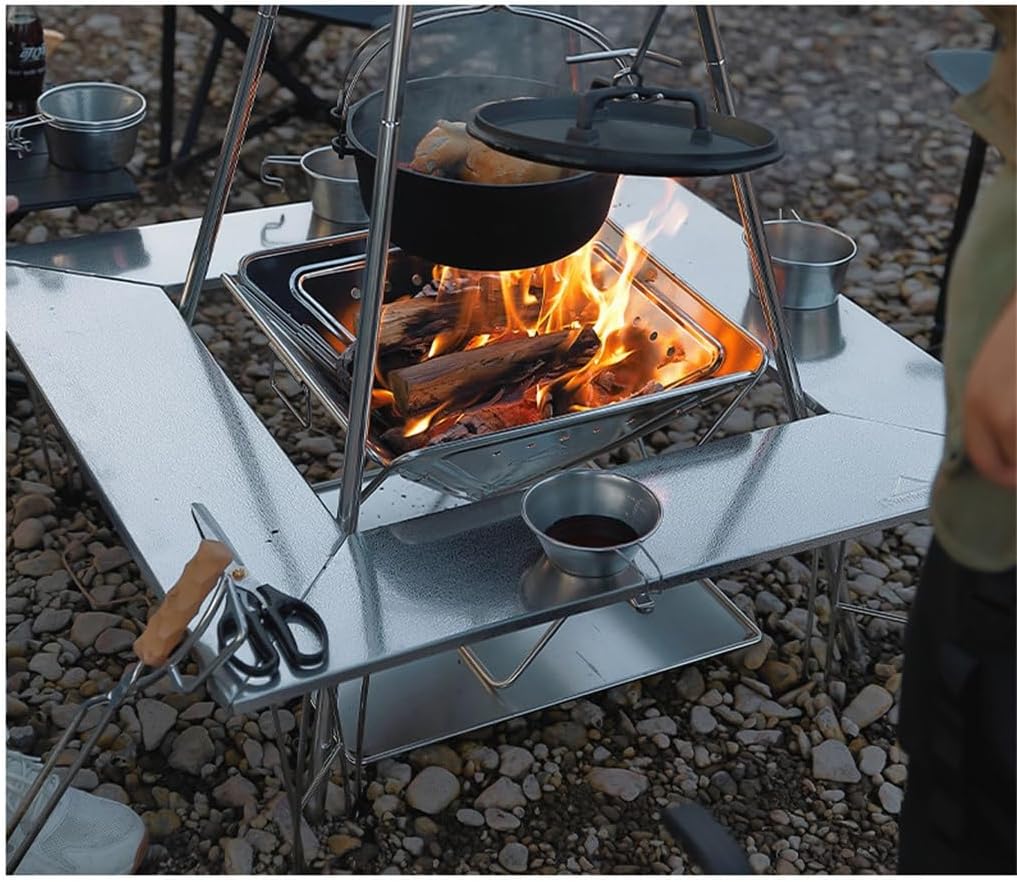 Stainless Steel Stove Table Detachable Barbecue Table Outdoor Folding Table with Three Planks