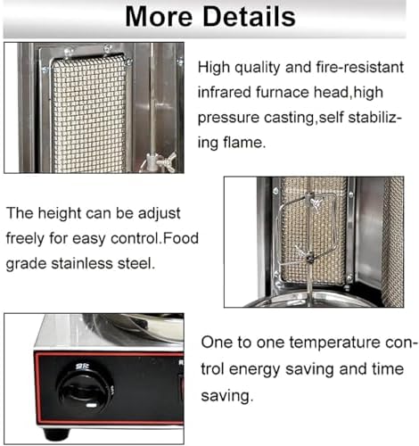 Experience the ultimate grilling experience with our Gas Kebab Maker, designed for versatility and convenience. Perfect for family gatherings, outdoor picnics, and even professional catering, this grill features a 360° automatic rotating mechanism that ensures even cooking and delicious results every time. Crafted from high-quality stainless steel, this grill not only enhances your outdoor cooking but is also easy to clean, making post-barbecue cleanup a breeze. With multiple heat dissipation holes, safety is prioritized, allowing you to enjoy your grilling without worry. The independent temperature control feature ensures that your food is cooked to perfection without the risk of burning. Product Specifications: - Name: Gas Kebab Maker - Color: Black, Silver - Material: Stainless Steel - Gas Pressure: 2800P - Gas Source: LPG - Size Options: - Double Knob Kebab Machine: 300*300*490mm - Three-Knob Kebab Machine: 510*300*490mm Instructions for Use: 1. Ensure the power supply voltage matches the device specifications. 2. Use safe and reliable gas tanks, pipe fittings, and regulators to avoid leaks. 3. Avoid hitting or flushing the burner with water. 4. Always turn off the gas or electricity when not in use. Packing Includes: 1 * Smokeless Grill Machine (Gas pipe not included) Elevate your grilling game with our Gas Kebab Maker, where convenience meets quality. Ideal for those who love to entertain or simply enjoy home-cooked meals with friends and family, this grill is your go-to solution for delicious kebabs and more.