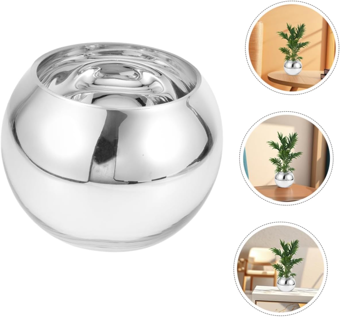Package Include 2 x ball glass vases Characteristics -Material:Glass planter pots -Multifunctional: ideal for living rooms, bedrooms, and offices, it adds a natural, refreshing ambiance to any setting terrarium bowl -Hydroponic versatility: suitable for hydroponic plants, this vase enhances your indoor environment holiday vase -Size:15.00X15.00X11.00cm/5.89X5.89X4.32in bouquet vase -Secure flower placement: the precisely designed opening holds flowers firmly, showcasing their elegance elegant flower vase -Color:Silver container -Contemporary style: the round glass vase adds a contemporary touch to your living room, reflecting your personal style air planter holder -Sturdy construction: made from glass, this vase ensures longterm use and resilience pedestal glass vaseGoods Informationglass pedestal vase Its wide opening allows for easy placement of flowers, while the reflective surface enhances the overall aesthetic.unique centerpiece vases Ideal for special occasions or everyday use, this vase adds a touch of elegance to any room, making it a versatile addition to your home decor.glass planter pot This round glass vase is for creating stunning floral arrangements