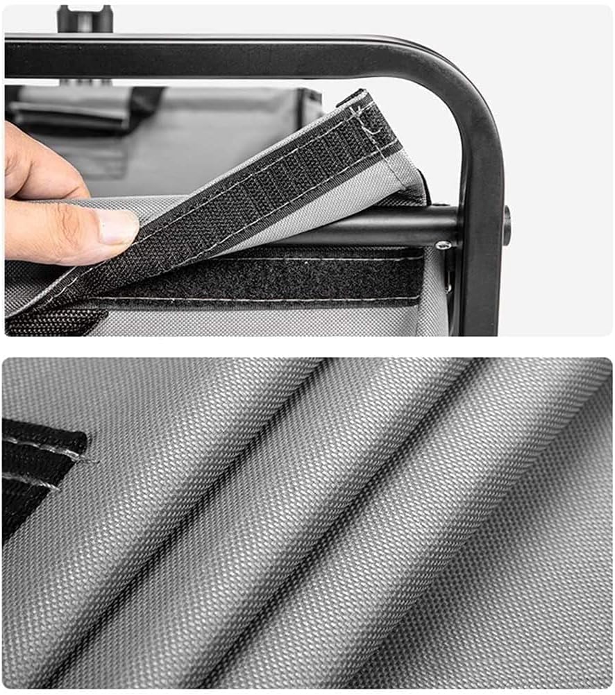 The foldable outdoor garden tool cart makes it easy to use gardening tools when working in the yard. It is also very suitable for family outings, distributing supplies or pets traveling with pets ★Features: 1. Foldable, easy to carry, not taking up space 2. The push-pull rod can be adjusted in multiple angles to meet different needs 3. Large capacity, can carry 100kg/220lbs 4. The fabric car basket is removable for easy cleaning 5. Double brake system, safe and secure 6. With a roof, it can block high-intensity sunlight ★Specifications: 1. Name: Folding Camping Trolley 2. Material: Oxford cloth, plastic sprayed steel pipe 3. Basket size: 80 x 45 x 28cm/31 x 18 x 11in 4. Load capacity: 100kg/220lbs ★Package content: Foldable push-pull trolley with roof (not including other things)
