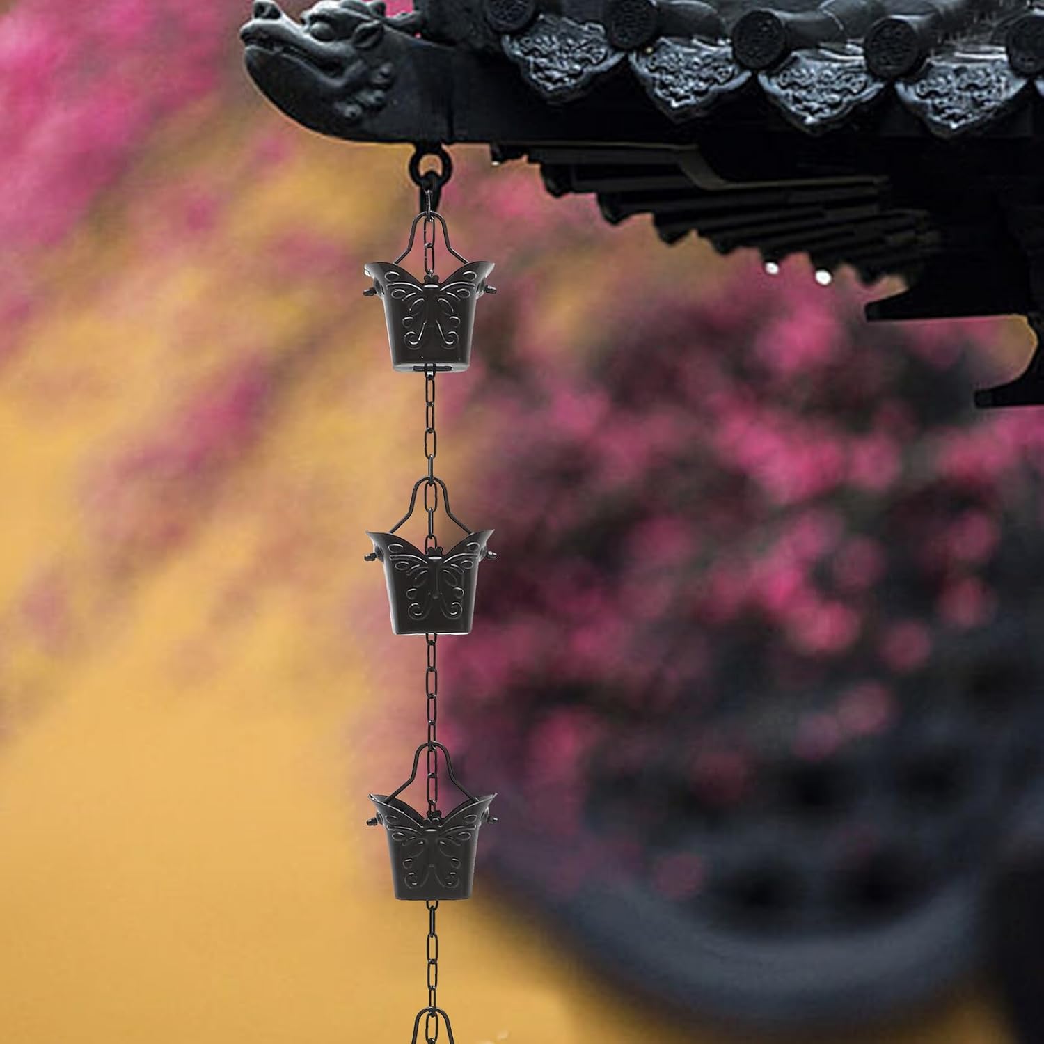 Package Include 1 chain Features - Material: Aluminium alloy. -Product Info:Aluminum alloy butterfly rain chain - While rain chains beautify your home, they are also fully functional and convey water the ground rain gutter chains. - With fine workmanship, not easy to wear and tear, very practical in use Downspouts Rain Chains. - Made of materials, which is durable and safe for a long time use. - Perfect for home, temple, shop, garden, etc. A wonderful gift for your friends on housewarming day rain chains gutter. - It is very elegant and a fun decoration for your home or outdoor metal rain chain for balconyGoods InformationRain Chain for Gutter Meanwhile, it owns a special and attractive appearance design.rain chain garden ornament We adopt aluminium alloy material, can keep it for a long time.Courtyard Decorative Rain Chain If you are looking for a rain chain with reliable material and , I will tell you that our rain chain will be