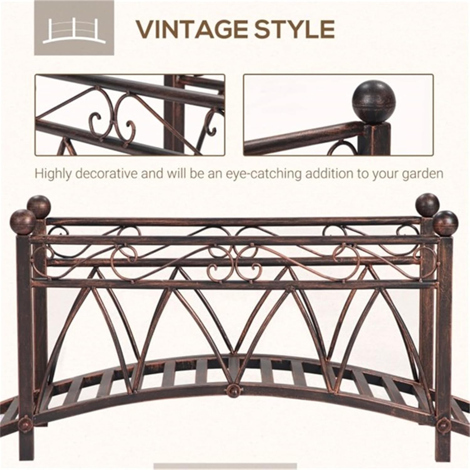 - Color: Bronze - Material: Steel - Overall Dimensions: 40.25" L x 16.5" W x 17" H - Bridge Floor Width: 41.25" L x 13.5" W - Bridge Opening Height: 4.25" H - Side Rail Size: 29.25" L x 17" H - Weight Capacity: 265 lbs.