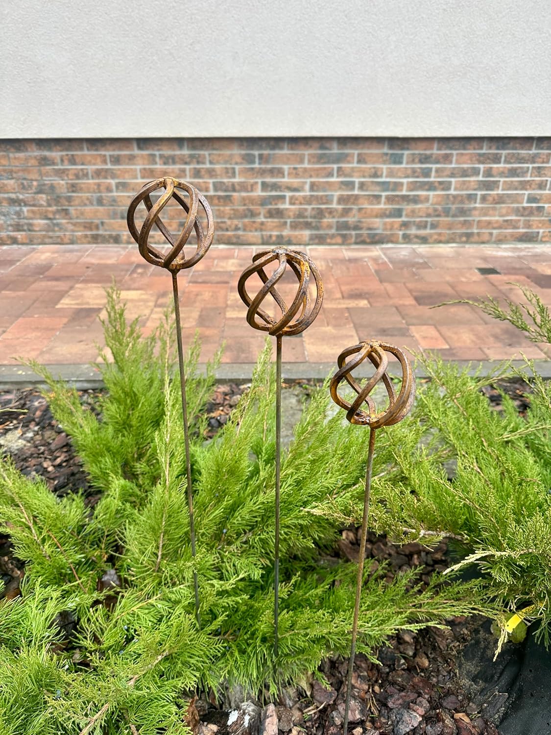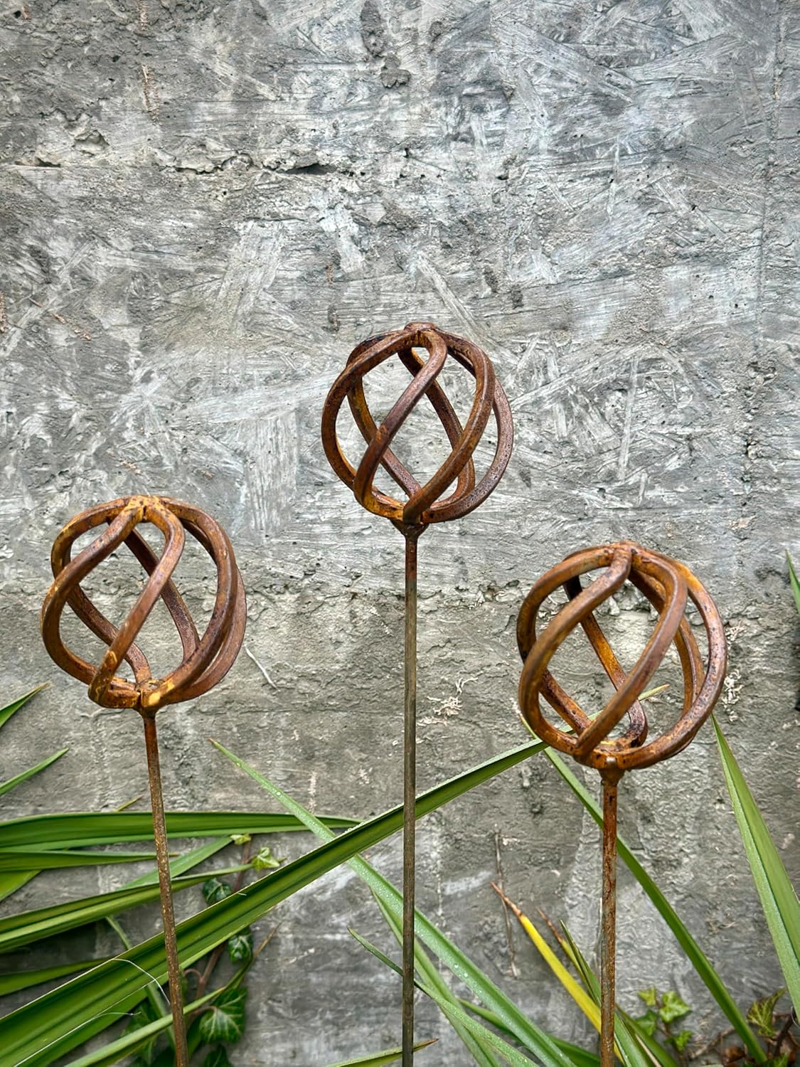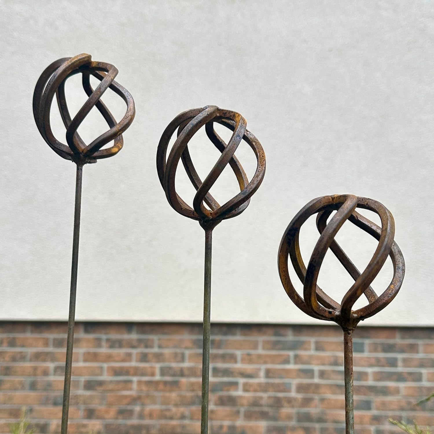 This Rustic metal set of 3 will place decorative accent in the garden compositions and landscape, create an atmosphere of romance and coziness in your home. This rusty metal art could be used as decoration at your home, in your garden, backyard, terrace or entrance to your home. This yard decor made from natural metal and it covered with a natural rust. This rusty garden decor can be used all year round, it is not afraid of precipitation, direct sunlight, etc. Elevate outdoor spaces with our exquisite garden decor, an ideal gift for passionate garden lovers. Whether it's a birthday, anniversary, housewarming or any special occasion, this unique and beautifully crafted addition will bring joy to their green haven.