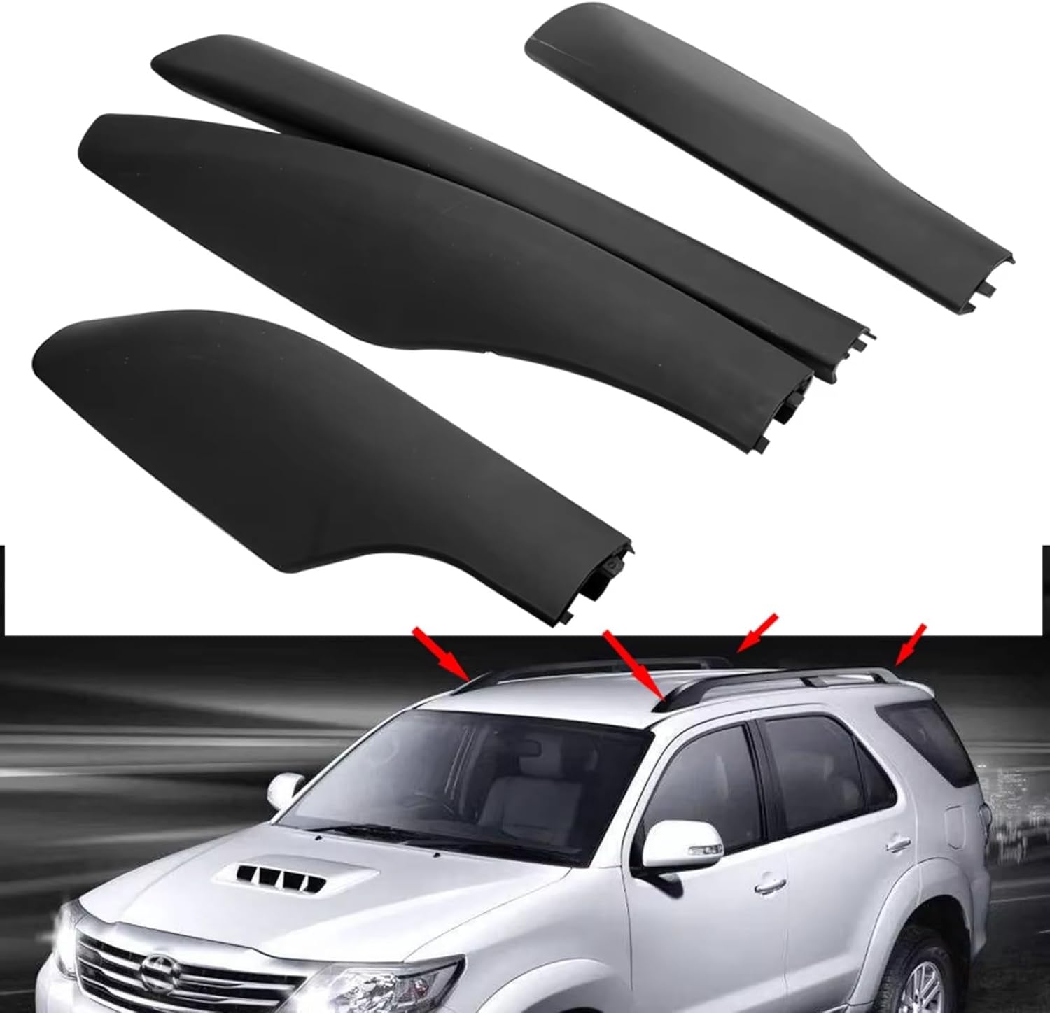 "Type: Roof Rack Rails End CapColor: BlackPackage included:4× Roof Rack Rail End Cap(Front+Rear)Welcome to our store! We provide customized services for your car. Customer satisfaction is always our top priority. We are happy to answer any questions, inquiries, or other concerns you may have.