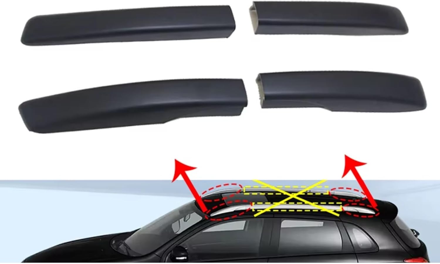 "We are a professional manufacturer of auto and motorcycle parts, providing you with auto/motorcycle accessories, modification parts, interior parts, etc. If you have any questions, please email us, and we will be happy to assist you.Color:BlackNumber of Pieces:4pcsPlacement on Vehicle:Roof Rack Rail Rear End CapPackage included:4× Roof Rack Rail End Cap(Front+Rear)"