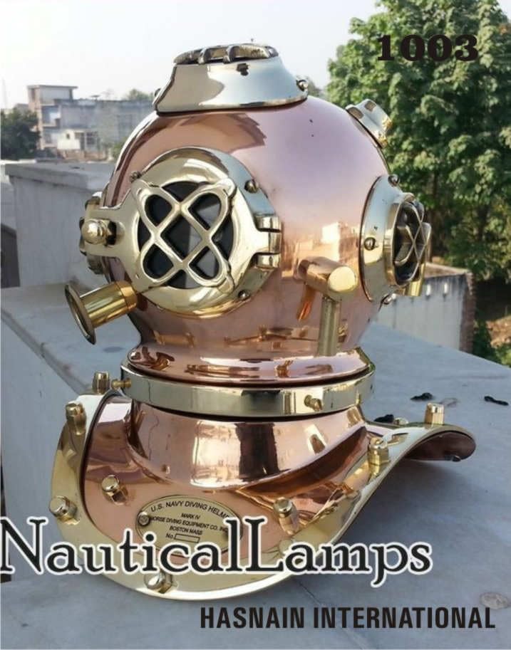 WELCOME TO STORE HASNAIN INTERNATIONAL ABOUT US - "Quality first, customers foremost" We are passionate about providing high quality, cost-effective price and perfect customer service. Product Specification : Mini Diving Helmet Anchor U.S Navy Divers Helmet Mark V Solid Brass Size 6 Inch Helmet Gift The product is completely handcrafted Material :- Full Solid Brass Size of the mini diving helmet is 7.5 X 6 inches Weighs 1.2kg approx. Volume weight is 2.5kg approx. Antique style Brass finishing Usage : Home Decorative,Desktop Decorative.Table Decorative Collectible Items