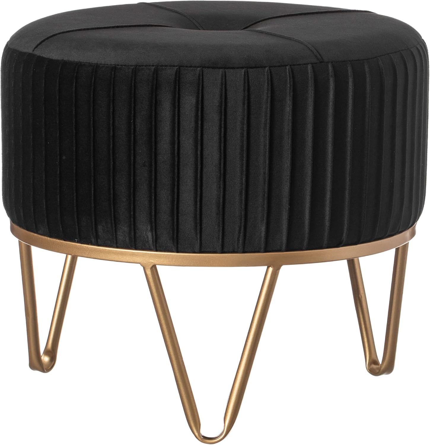 Home entrances and living rooms need practical and decorative furniture to make home feel more inviting. This round ottoman invites decorative charm and practical functions wherever placed. Velvet fabric composition offers a durable and comfortable seat to use as an ottoman, foot stool, or vanity stool. Thick velvet on a sturdy metal base makes it durable to use. Plush velvet top and gold finish combine to create a stylish piece.