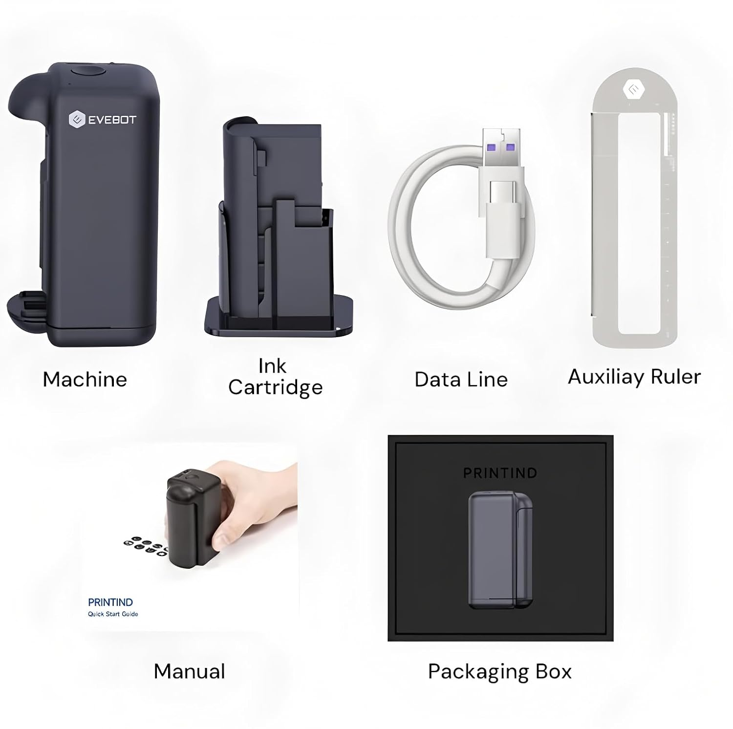 EVEBOT PrintInd industrial inkjet printer quick-dry inks permanent ink print logos or labeling on a variety of surfaces including metal glass plastic and canvas(Printlnd+6Cartridge)