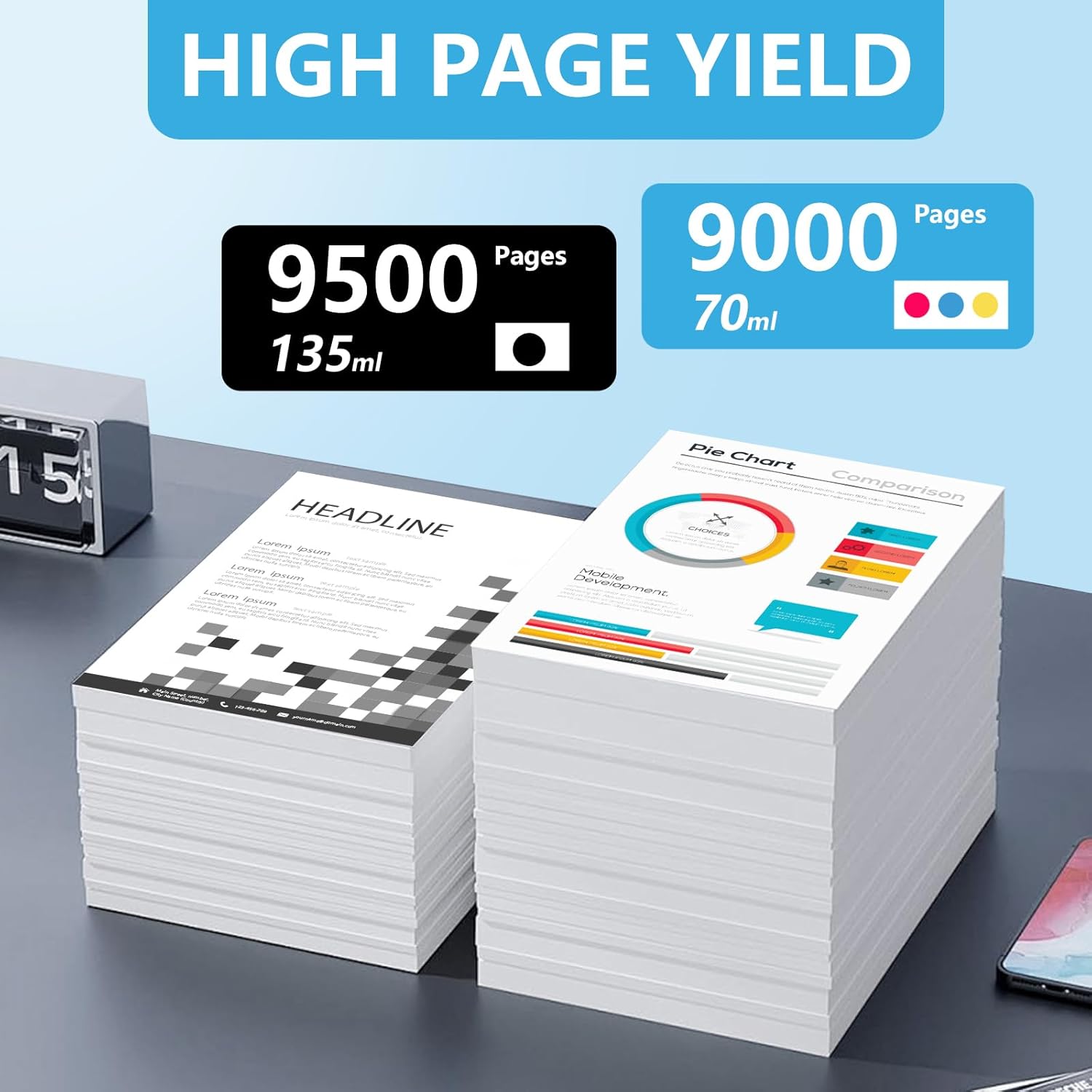 • High Page Yield for Cost Efficiency:Maximize your output with exceptional page yield. The compatible 32XL black ink (135ml) yields approximately 9,500 pages, while each compatible 31 color ink (100ml) yields about 9,000 pages at 5% coverage on A4 paper, offering outstanding value.