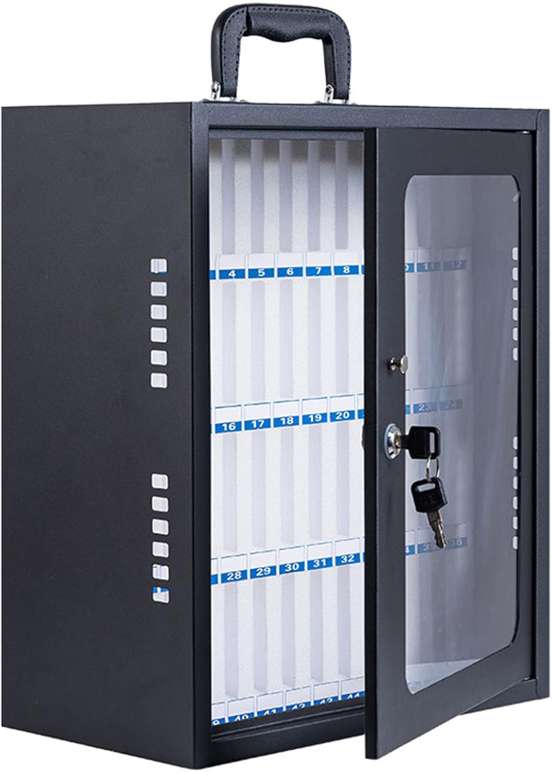 Cell phone safe lock design ensures that your cell phone is safe and secure without fear of loss.The top carrying handle is easy to move and carry, and each slot has a numbered label for easy cell phone management.Warm tips : Due to different measurement methods, there may be 1~2cm error, please understand!Please understand that there may be color difference due to the monitor or shooting light and other reasons!