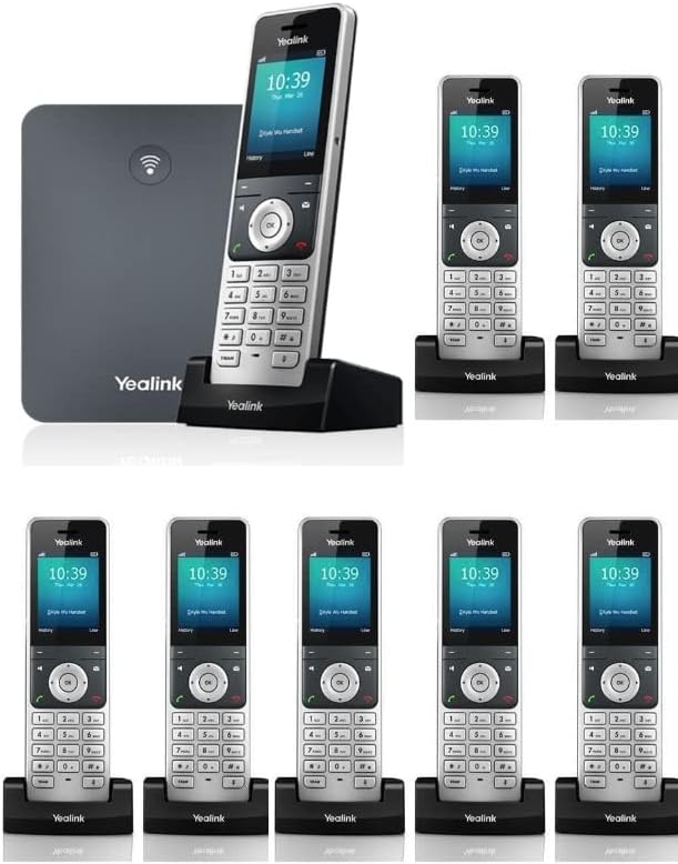 W76P Bundle of W70B Base and W56H handset + 6-Unit W56H Handset High-performance SIP cordless phone system 2.4″ 240 x 320 color screen with intuitive user interface Up to 20 simultaneous calls Up to 10 DECT cordless handsets / Up to 10 VoIP accounts Up to 30-hour talk time (in ideal conditions) / Up to 400-hour standby time (in ideal conditions) Quick charging: 10-min charge time for 2-hour talk time DECT radio coverage up to 50m indoors and 300m outdoors Quick charging: 10-min charge time for 2-hour talk time - Energy-saving ECO features - Charger wall mountable Headset connection via 3.5 mm