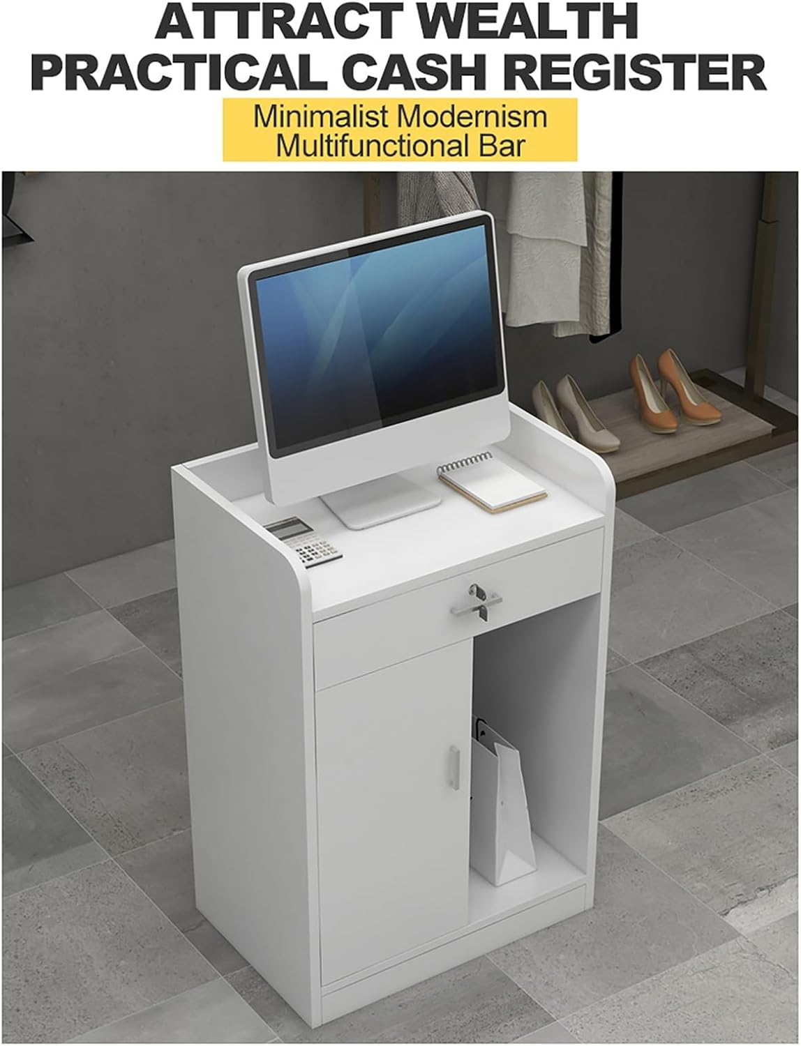 Modern Retail Counter for Checkout Reception Desk with Counter Its earthy color, combined with the unique texture of the counter front, creates a chic and modern look.This wood retail counter is suitable for various occasions, such as barber shops, supermarkets, clothing stores, restaurants, or beauty salons.Spacious Working AreaIt has a spacious tabletop measuring ample legroom.Convenient Top ShelfIt provides an extra space to place small and light items.Wrap-Around Side PanelsThis thoughtful design gives you an exclusive personal area, bringing a full sense of privacy and security.Unique TexturesIt provides a chic and contemporary looking of this front desk for lobby.The Cable Grommet DesignIt is used for cords or wires management for your office desk. There is no more messy cables anymore.Notice:1. Note: Due to the particularity of the furniture, there will be slight errors in the finished product, which is normal. The data is for reference only and must be based on the actual product. We hope for your understanding!2. If you have any questions, you can contact us by email, and we will definitely give you a satisfactory solution as soon as possible.