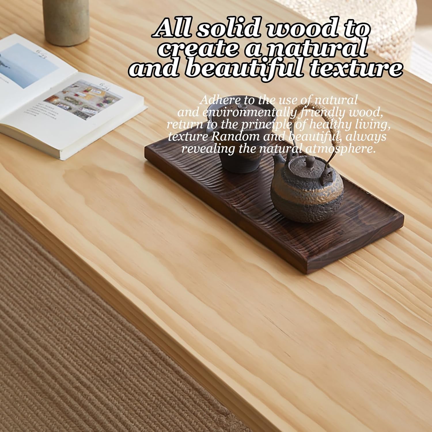 Find your inner tranquility with our multi-functional Japanese Floor Table. It provides a serene space for meditation, enjoying a tea session with a friend, or simply acting as a convenient side table. Thicker design is more stable Made of solid wood, the tabletop is 3.5cm thick, refusing to wrap the edge. Rounded corners design, peace of mind care Rounded corners, polished and delicate, to prevent damage caused by bumping, enhance home safety, delicate touch does not hurt the hands. All solid wood to create a natural and beautiful texture Adhere to the use of natural and environmentally friendly wood, return to the principle of healthy living, the texture is random and beautiful. Direct spelling of large boards, refusing artificial boards Adopting large board vertical splicing, rejecting artificial boards, revealing the natural atmosphere at all times. Product Information Name: Multifunctional Japanese Floor Table Material: Premium Solid Wood Color: Teal/Wooden Size Options: 60×35×30cm/23.6×13.8×11.8in 80×50×38cm/31.5×19.7×15in 100×60×38cm/39.4×23.6×15in 120×60×38cm/47.2×23.6×15in Key Features: Versatile, aesthetically pleasing, superb decorative addition. Suitable For: Living Room, Bedroom, Corner Nook, Balcony, Office, Outdoor Spaces. Packing List: 1* Portable Japanese Floor Table.