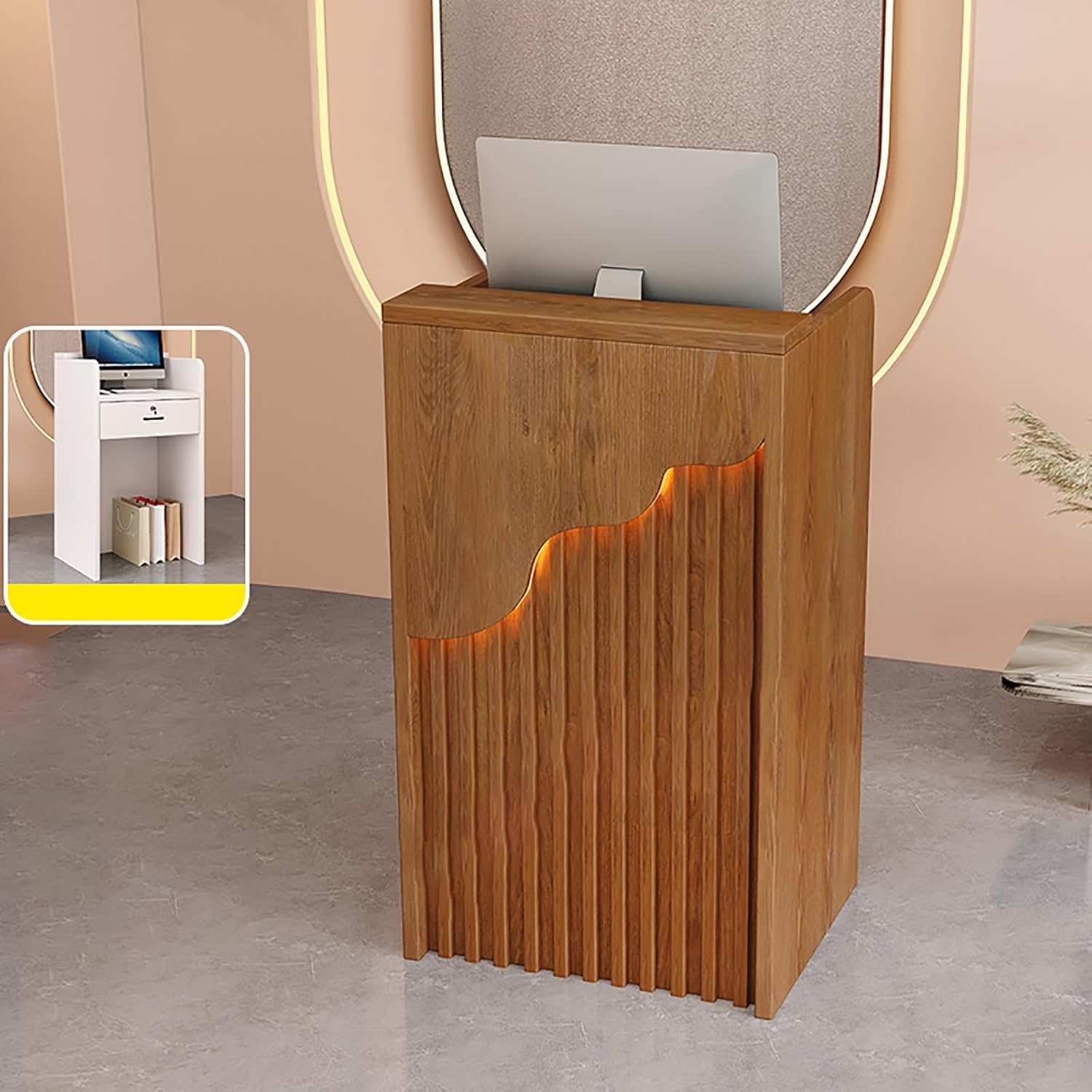 Reception Desk,Retail Counter for Checkout,Retail Checkout Counter Table,Modern Welcome Desk,with Lights & Lockable DrawersReception Desk is not only a functional working space - it is a stellar centerpiece crafted to transform your lobby, beauty salon, clinic, restaurant, or office space.Reception Desk with LED Lights for Lobby Beauty SalonThe Front Counter Desk is equipped with an LED light bar.Different lighting colors can be easily matched to different venues, matching different lighting colors to different décor styles. High-Quality of HardwareWe take your privacy and property security very seriously. Now you can enjoy a more private work area, provides an added level of security while creating a dignified look.Stream-line design with smooth veneer surface, this reception desk highly shows modernization and elegance for welcoming customers and clients.Simple and clean design concept effectively organize your work space, gives an aesthetic look.including drawer slides, cabinet door aisle chains, and keyboard slides. Opening and closing the tray smoothly !Sufficient Storage SpaceThe spacious desktop with keyboard tray has enough room for a computer, cash register and even promotional materials. Whether it's a lobby, salon, clinic, restaurant or office space, it creates a stunning atmosphere!Material: Engineered Wood, MDFFocus on Details for Good ProductsReception DeskHigh-quality Metal RailThe Reception Counter Table has 1 drawers, which are equiped with metal slides. Open and close drawers smoothly.Reception DeskSoft Open & Close HingesHigh-quality hardware is used for the Front Counter Desk to make opening and closing doors quieter and easier.Notice:1. Note: Due to the particularity of the furniture, there will be slight errors in the finished product, which is normal. The data is for reference only and must be based on the actual prod
