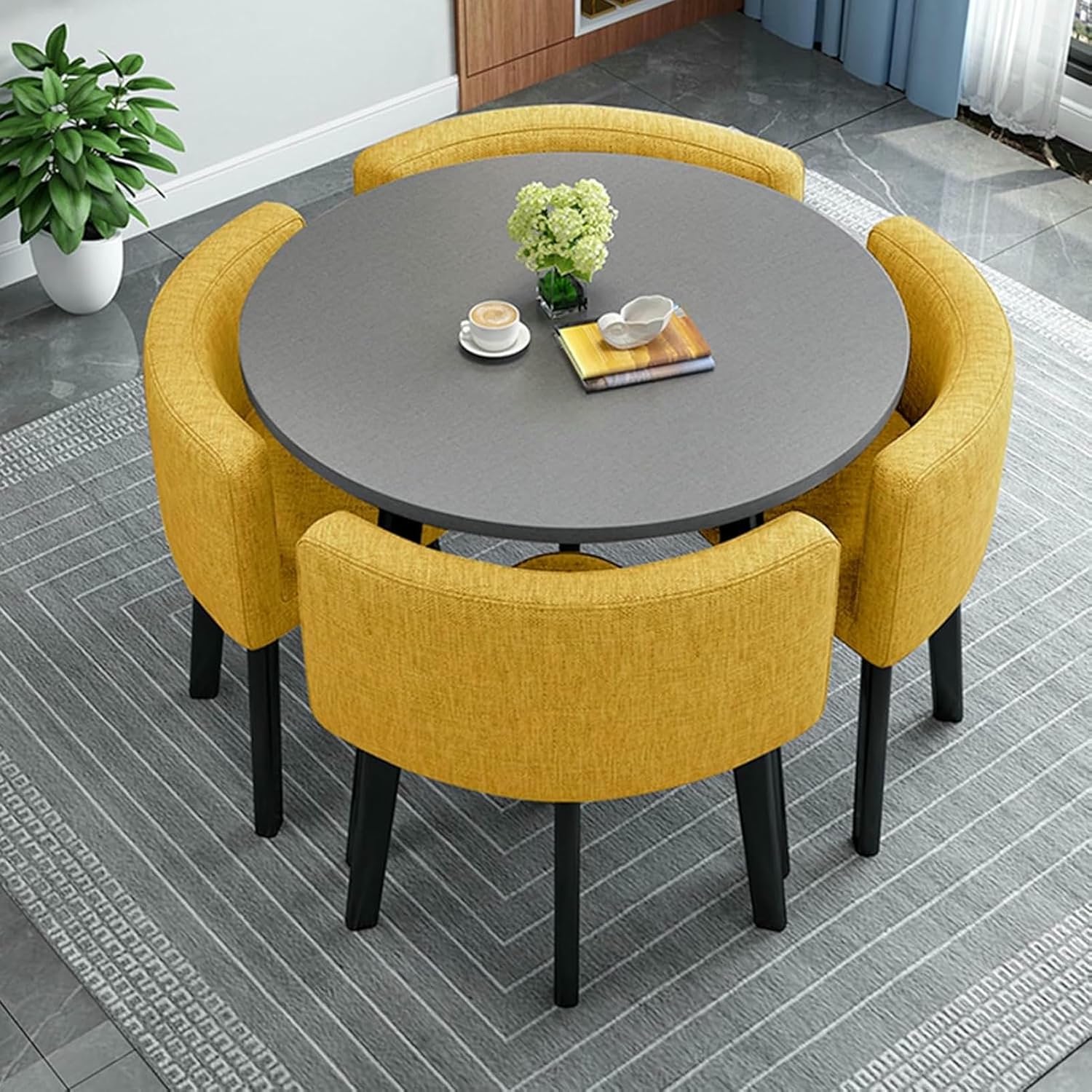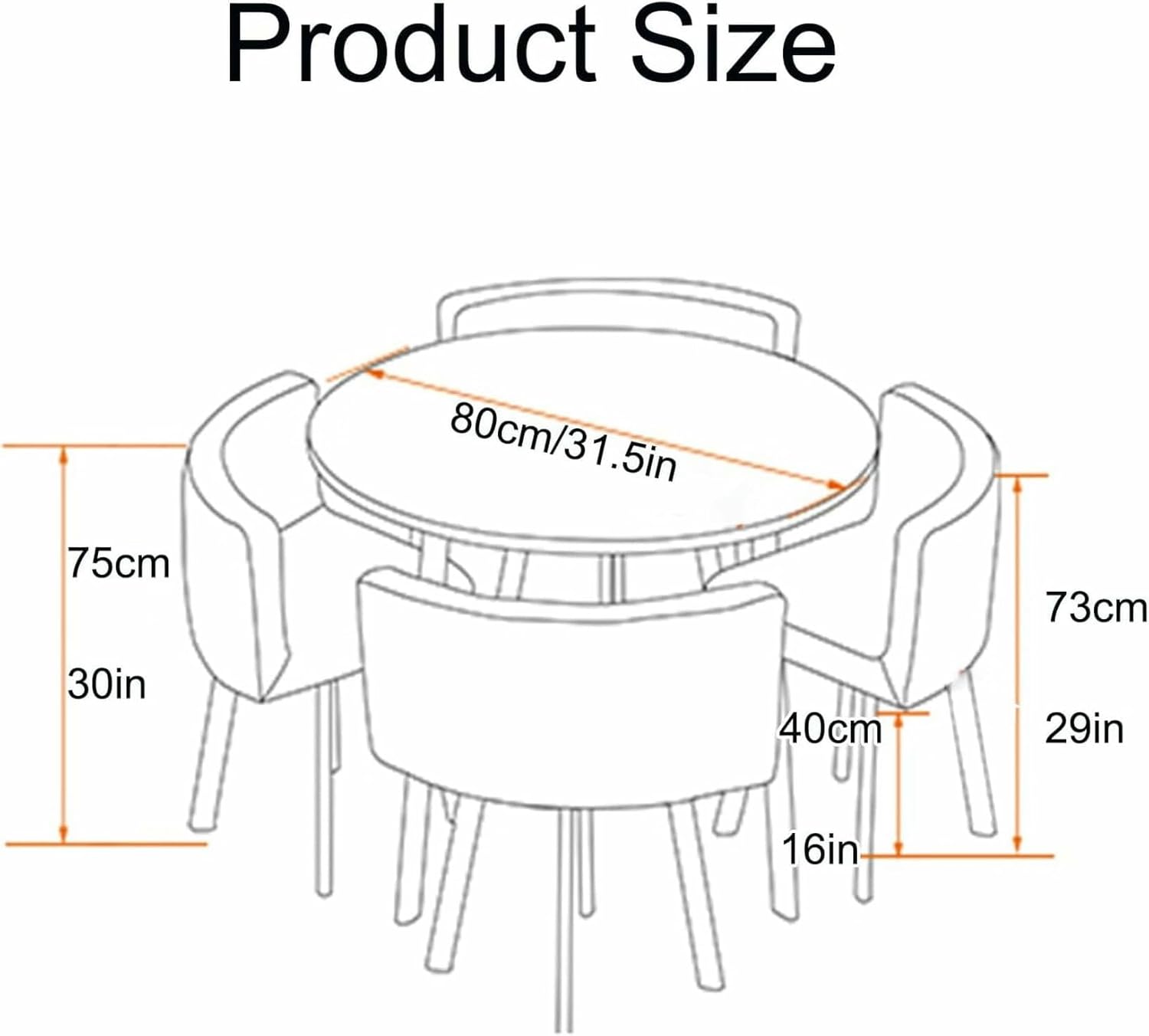 ❀Just Right Size & Space-Saving Design: Perfect for small meeting rooms or guest reception rooms without taking up too much space.❀This tableware is very easy to clean. It has a luxurious feel and effortless cleaning that can often refresh your dining room.❀The opening and closing method adopts a circular design, which improves the sense of space utilization and reduces the risk of bumping. The edges of the table are polished, smooth and easy to clean.●Features: simple and elegant, saving space●Color: light gray, dark gray, green, orange, yellow●Outrigger color: black●Style: simple and modern●Bracket structure material: metal●Table shape: round●Desktop material: wood-based panel●Table top diameter: 80 cm/31.5 inches●Seat Cushion Material: Cotton Linen●Total chair height: 73cm/29in●Applicable scenes: coffee shop, living room, kitchen, terrace, restaurant, lounge, reception room, office, outdoor, milk tea shop, bakery, hotel, negotiation room, bar, etc.✲Applicable number of people: 4 people✲Packing method: assembled✲Packing list: 1*table, 4*chairs▲ Note:1. The product size is similar, there is a 1-2cm error, the actual size shall prevail2. Due to light, angle, monitor and other reasons, there may be some color difference. All products are subject to the actual product.