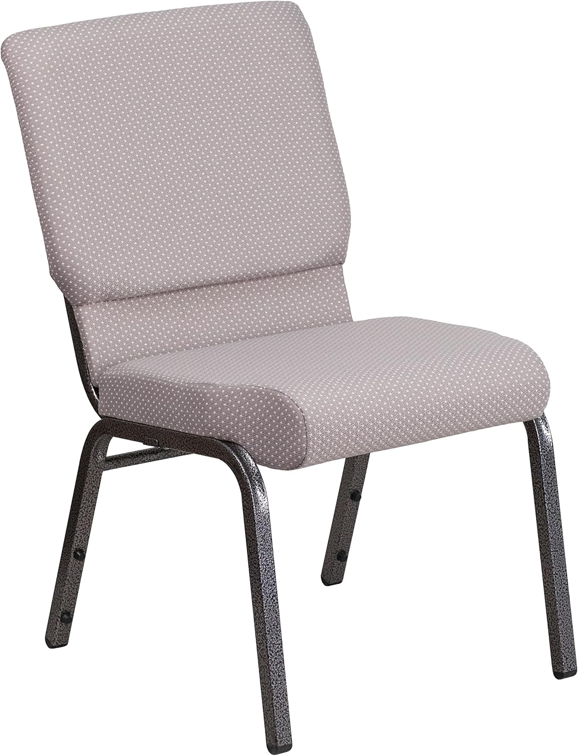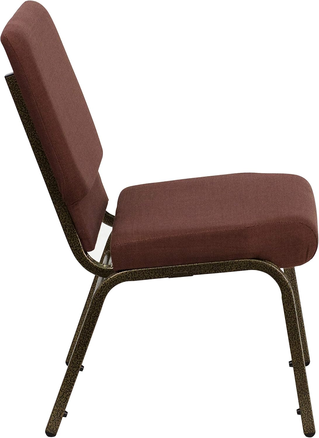 This beautiful, supremely comfortable padded chair will ensure your guests have an enjoyable experience whether you're hosting an all-day seminar, serving a 10 course meal or delivering your most inspirational sermon. Unlike pew seating, these chairs give you the capability to create different seating configurations as often as you wish making them an ideal seating solution for any venue. The upholstered stack chair with seat are generously padded and covered in durable fabric upholstery. The seat has a waterfall edge that provides an extra level of comfort by reducing pressure on your attendees' legs. A convenient book pouch on the back of the chair keeps seminar materials, bibles or hymn books readily available. Built-in ganging brackets connect your chairs and maintain nice, straight rows. Its sturdy 16 gauge steel, copper vein frame, with gracefully angled legs, has been tested to hold up to 800 pounds and plastic rocker glides protect your floor by sliding smoothly when you need to move the chair. This commercial side chair is stackable for easy storage making it an excellent choice for event venues, hotel lobbies, banquet halls, conference facilities and worship centers.