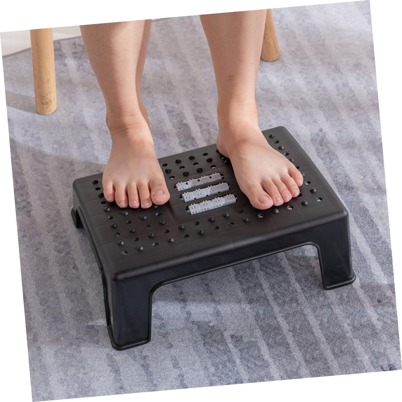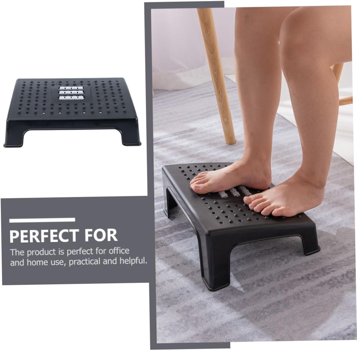 Package List 1 x footstool Features -Size: About 35.50X26.50X14.00cm/13.95X10.41X5.50inch Plastic Massage Footstool. -Material: PP kids' step stools. -Color: Black desk foot stool. -Simple and portable, it is to be used as the foot support stool in the home and office bathroom foot rest. -The foot stool is lightweight and easy to carry for convenient use and space-saving step stool for kids. -Humanized footrest design will give you a comfortable usage experience Household Footstool. -When you can't reach the height, you can use it as a foot pad, you also can sit on it to tie your shoelaces before going out kid stool. -The product also has a massage function that will make your feet feel comfortable toilet step stool.Goods Informationstepping stool for kids This multi-function and durable foot massage stool is made of high class PP material, which is durable and practical for long term use.couch black And its portable and anti-skid design makes it suitable for family use.kids potty It has good bearing ability, so it is safe and practical both for kids and adults use