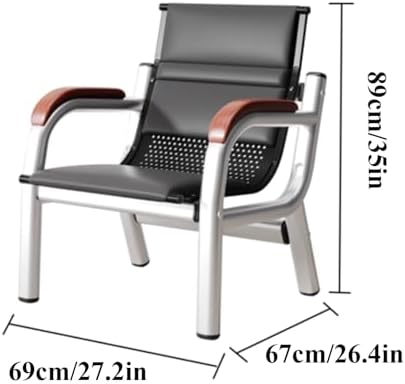 This reception chair combines comfort and practicality, making it an excellent choice for various public spaces. Designed with a breathable and soft leather-wrapped cushion, it offers a premium seating experience that enhances any waiting area. The high-elastic and durable cushion, paired with stable armrests, ensures both support and relaxation for users during longer waits. The chair features a robust iron frame, providing reliable support and stability, while the heightened headrest offers essential neck support, helping to alleviate fatigue. With wide armrests, this chair promotes a comfortable sitting posture, making it ideal for offices, banks, hospitals, and salons where guests may spend time waiting. In addition to its comfort, this reception chair is thoughtfully designed with ventilation holes that enhance air circulation, ensuring a cool and pleasant environment even in warmer conditions. Assembly is straightforward, with all necessary accessories included, allowing users to set up the chair quickly and effortlessly. Available in elegant black or brown, this single reception chair not only adds a touch of sophistication to any space but also meets the demands of high-traffic environments. With dimensions of 69 cm in length, 67 cm in width, and a height of 89 cm, it accommodates a weight capacity of up to 150 kg, making it suitable for a wide range of users. Perfect for airports, waiting rooms, offices, and more, this versatile chair balances style with functionality, ensuring it meets the needs of both guests and hosts alike. Choose this reception chair for a blend of comfort, durability, and aesthetic appeal that enhances any waiting area.