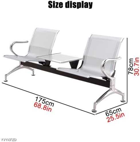 Welcome to our store! Our Waiting Room Chairs are designed with your comfort and safety in mind. Each chair features a breathable seat surface equipped with air holes, allowing for smooth air circulation that enhances the seating experience for passengers. The polished rounded edges minimize the risk of accidental scratches, providing a safer environment for guests. These versatile chairs are perfect for various settings, including reception areas, airports, and office lobbies. The non-slip feet not only enhance stability but also protect your floors from scratches, making them an ideal choice for high-traffic areas. **Product Details:** - **Product Name:** Waiting Room Chairs, Guest Reception Chairs, Airport Reception Chairs, Office Benches, Lobby Chairs - **Color:** Silver - **Material:** Metal - **Dimensions:** - 1 Seat: 120x65x78cm (47.2x25.5x30.7in) - 2 Seat: 175x65x78cm (68.8x25.5x30.7in) - **Features:** Space-saving, versatile, stylish design, lightweight **Package Includes:** - 1 x Waiting Area Chair **Important Notes:** 1. Some simple assembly is required upon arrival. 2. Please verify the dimensions before purchasing. Note that manual measurements may result in a slight error of 0-3cm. 3. Color variations may occur due to different monitor settings; we appreciate your understanding. Enhance your waiting area with our stylish and functional chairs, providing both comfort and safety for your guests.