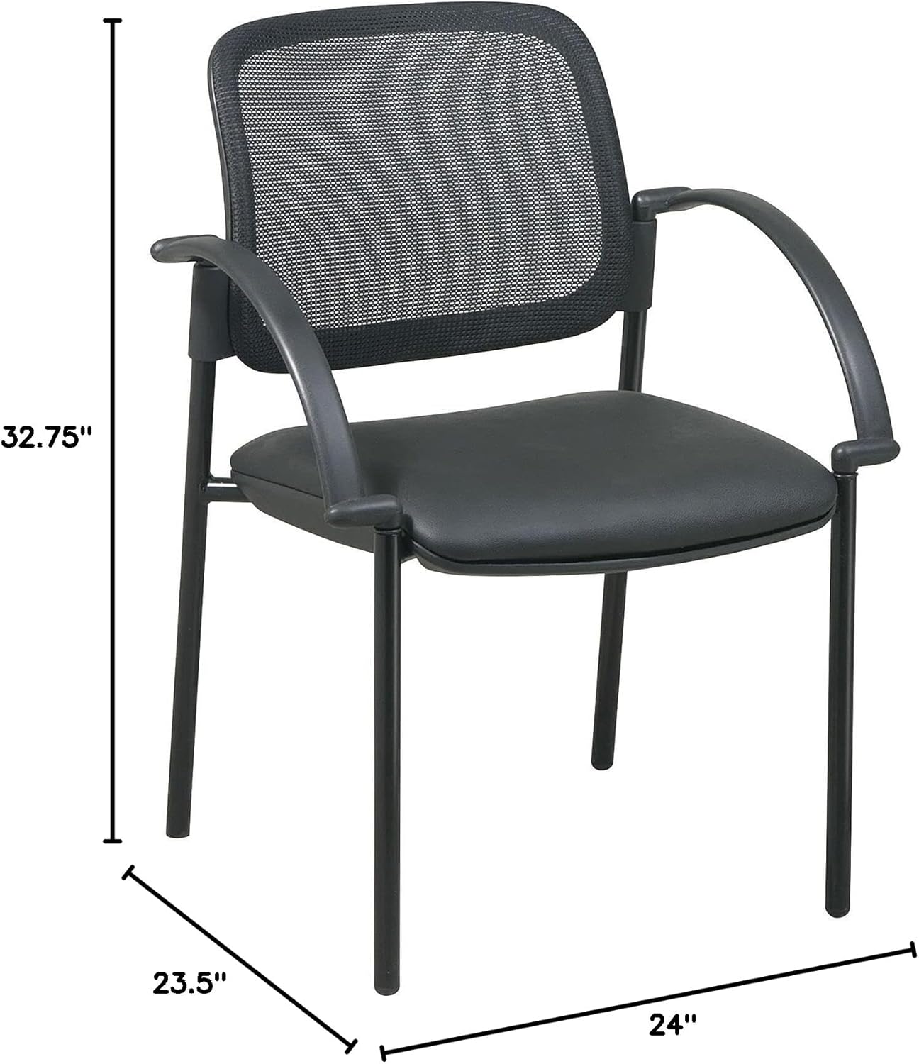 Waterfall arm design provides a comfortable sitting position. Black. Faux Leather. 24"x23-1/2"x32-3/4". Sold as 1 Each.
