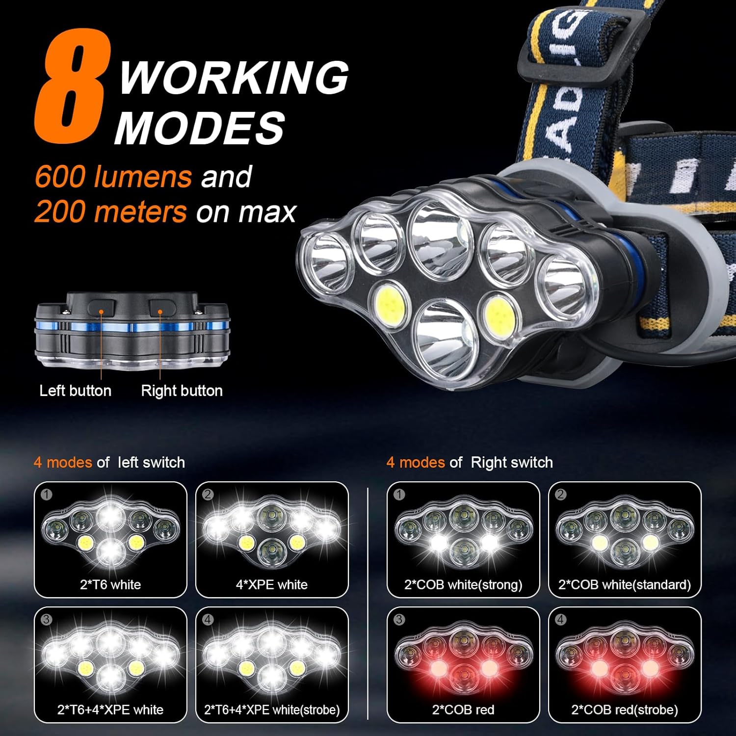 | Recommended Uses For Product | Camping, Fishing, Cycling, Hiking, Jogging, Long-time night activities |