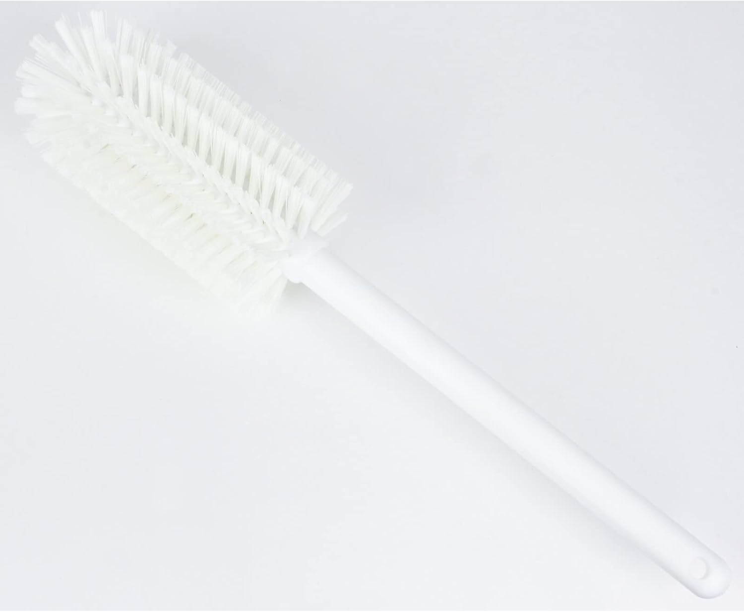 SPARTA 16 Inch Bottle Brush for Wide-Mouth Containers Designed for cleaning jars, bottles, pitchers, and other containers where internal surface access is required. The 3 inch diameter brush head provides full contact inside wide-mouth openings, helping remove residue along container walls and bottom surfaces. A 16 inch overall length allows users to reach deeper into containers while maintaining control during routine cleaning tasks. Polyester bristles deliver consistent scrubbing performance and maintain their shape through repeated use with cleaning solutions. The slim handle design supports controlled maneuvering inside containers without sacrificing grip or stability. Constructed with FDA-compliant materials and BPA-free components for use in foodservice and commercial environments. Available in multiple colors to support organized cleaning programs by task or area. Model number: 40001EC02