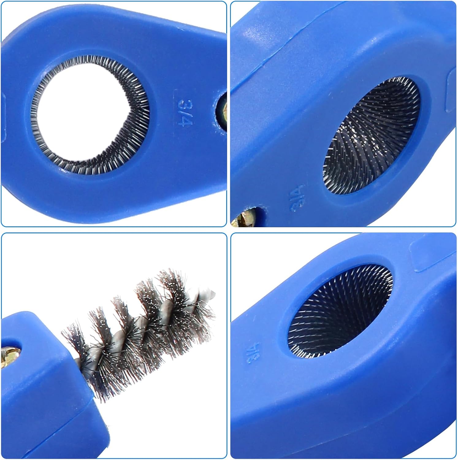 The two holes in the middle of the copper tubing brushes can be used to clean the outer diameter of the pipe, and the brush heads at both ends can be used to remove rust on the inner diameter The brush heads on both sides are made of high-quality bristles, which have the properties of tear resistance, impact resistance and corrosion resistance, which can effectively prevent the bristles from becoming flat. Specification Material: Polystyrene and stainless steel bristles Color:Blue Size: Length: 7.87" Width: 1.7" Height: 0.87" Package included: 1 x Copper tubing brushes Notices 1.Since the size is manually measured, please allow an error of 1-2mm 2.The color of the product may vary slightly due to photography & your screen