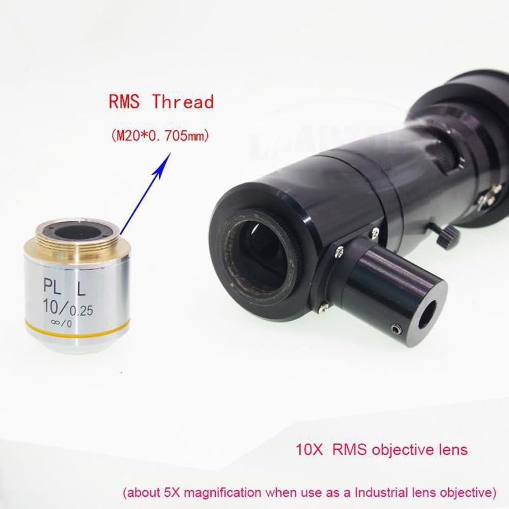 PLAN Achromatic Objective Lens 5X 10X 20X 50X 100XLong Working Distance Metallographic Microscopeor Industrial coaxial Light Microscope 20.2mm/RMSFeature:Type: Microscope achromatic Objective lensMagnification: 5X 10X 20X 50X 100XMounting size :20.2mmStandard RMSthreadMaterial: Precision Copper coreSpecification:Thread : M25 (25mm x 0.75mm)The multiple is: 1XThe materials are: glass and metalYou can assemble this 1X lens directly(without objective lens) and you can get about 400X magnficaiton.Package including (option):1 x PLAN Achromatic Objective Lens