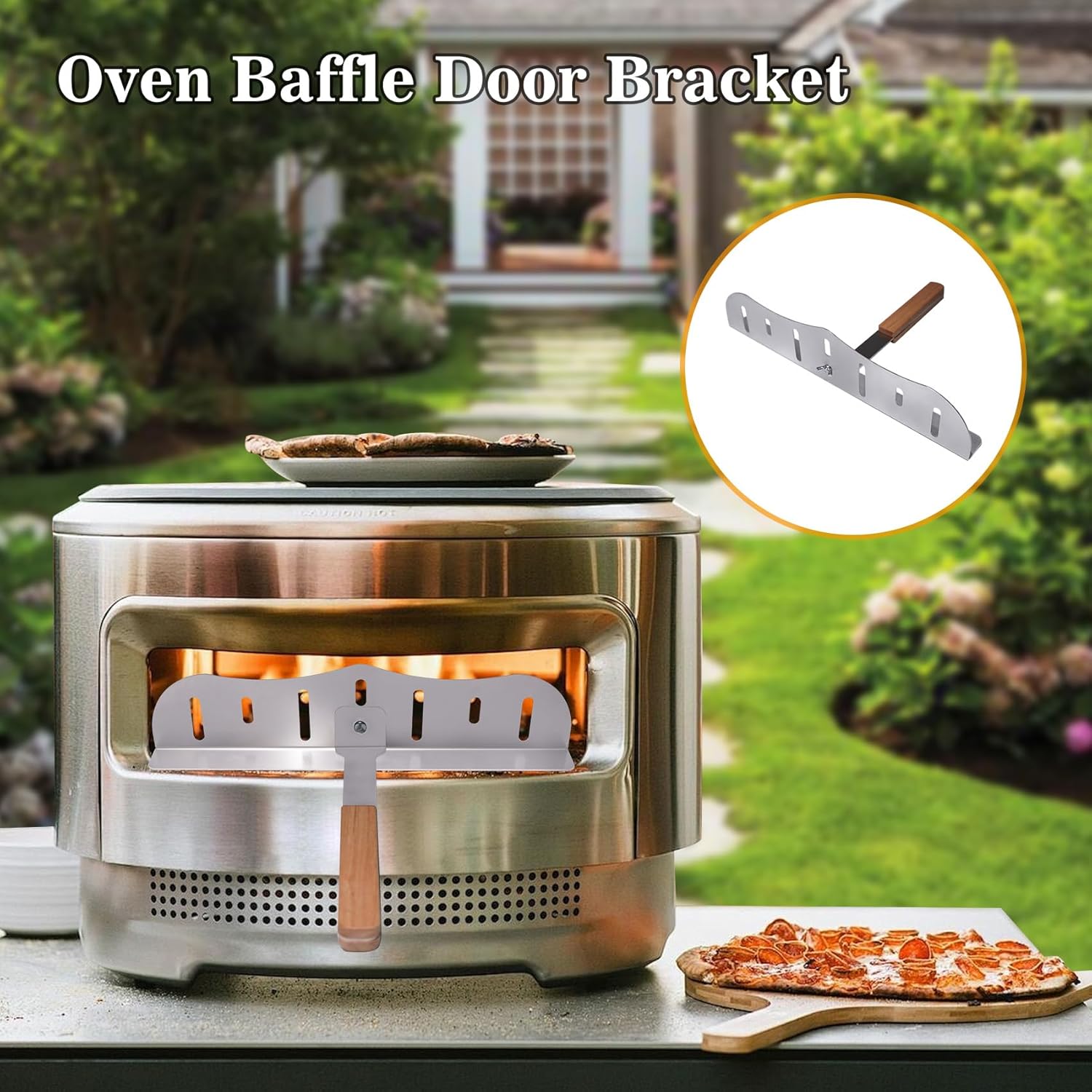 Universal Compatibility: The oven baffle door bracket is compatible with all dome pizza ovens. The baffle length is 16 inches and the height is 4 inches. You can use it with confidenceWindproof Design: The oven baffle door bracket can block most of the cold air from your oven while preventing a large amount of hot air from escaping. The strip holes on the door baffle panel can allow a small amount of cold air to enter. This is to prevent the internal temperature of your oven from being too high and reducing its lifespan, and also to prevent your pizza from cracking due to excessive temperatureHigh-Quality Material: The oven baffle door bracket made of stainless steel has strong heat resistance and fire resistance, is not prone to warping or deformation due to high temperatures, and is easy to maintain. The eco-friendly wooden anti-heat handle prevents the handle from getting too hot after the oven is working, thus avoiding burnsSave Baking Time: The oven baffle door bracket minimizes heat loss for your oven, maintains a high temperature and stable thermal environment inside the oven, and thus achieves efficient energy transfer. Save you 50% of the baking timeEasy to Install: The installation method is simple and convenient. The stainless steel butterfly nut does not require a hex wrench and can be directly tightened without additional installation tools. The detachable handle design saves you storage space