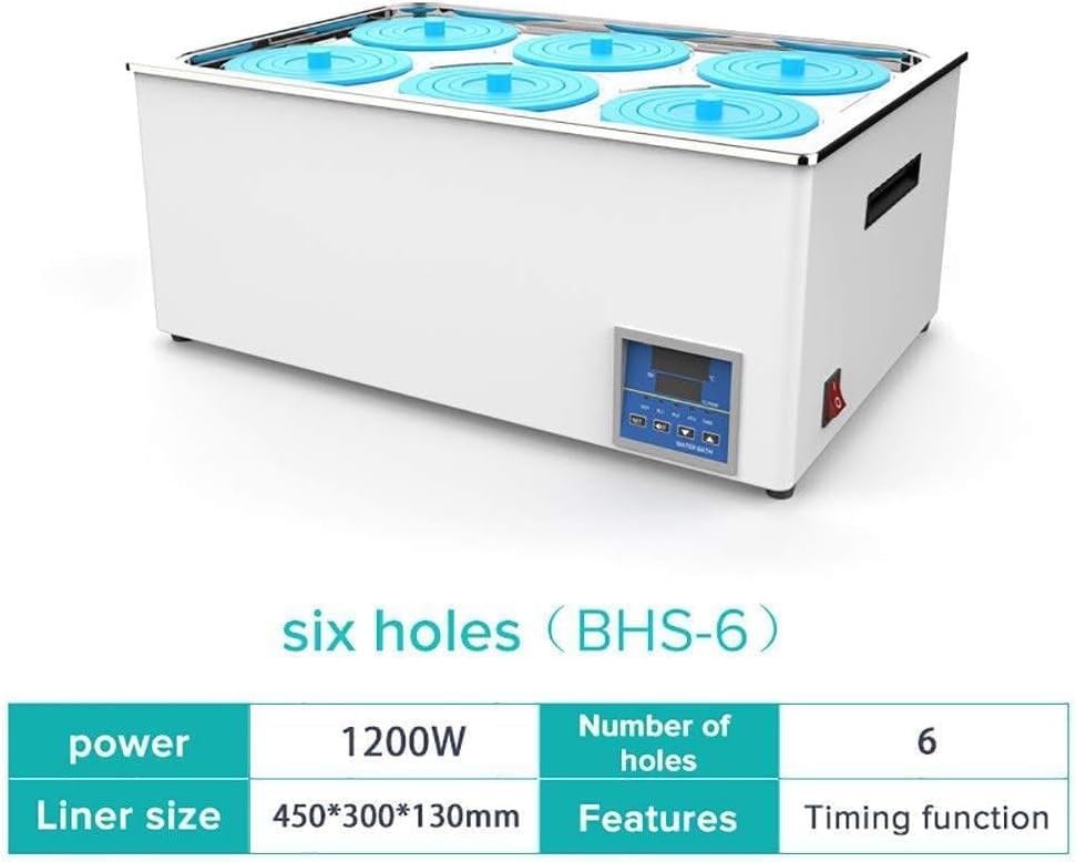 • Digital Temperature Control: This Laboratory Water Bath features 4 Wells with 800W Heating Power, perfect for precise temperature management. Inner Tank Dimensions: 300*300*140mm. For larger tasks, choose the model with 6 Wells and 1200W Heating Power, with Inner Tank Dimensions of 450*300*130mm. Ideal for scientific experiments and research applications.