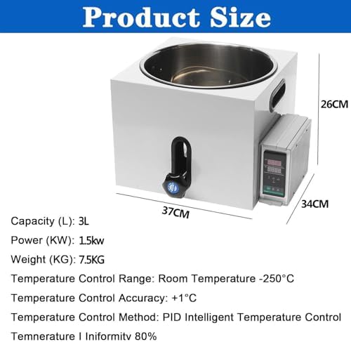 Introducing our Constant Temperature Oil Water Bath, an essential tool designed for scientific research and educational purposes. This versatile device provides precise temperature control, making it ideal for applications that require consistent heating. **Key Features:** - **Accurate Temperature Control**: With a temperature control range from room temperature to 250°C and an impressive accuracy of ±1°C, our water bath ensures that your materials are heated uniformly and reliably. - **PID Intelligent Temperature Control**: This advanced feature optimizes heating efficiency and maintains the desired temperature, allowing you to focus on your experiments without constant monitoring. - **Multiple Capacity Options**: Available in 2L, 3L, and 5L sizes, this water bath can accommodate various container sizes to suit your specific needs. - **Enhanced Temperature Uniformity**: Achieving 80% temperature uniformity means that your materials will be uniformly heated, ensuring consistent results every time. **Usage Scenarios**: Whether you're conducting experiments in a lab, performing educational demonstrations, or engaging in quality control processes, our Constant Temperature Oil Water Bath is designed to meet your requirements. Simply fill the bath with clean or heated water, set your desired temperature, and let the device maintain a constant environment for your samples. **Easy to Use**: 1. Place the unit on a stable surface and fill it with water. 2. Power on and set your desired temperature using the control knob. 3. Once the water reaches the set temperature, place your container inside to begin heating. 4. After use, switch off the device and drain the water for easy maintenance. **Included in the Package**: - 1 x Constant Temperature Oil Water Bath - 1 x Instruction Manual For any questions or feedback about our product, please feel free to contact us via email. Elevate your research with our reliable Constant Temperature Oil Water Bath, designed to enh...
