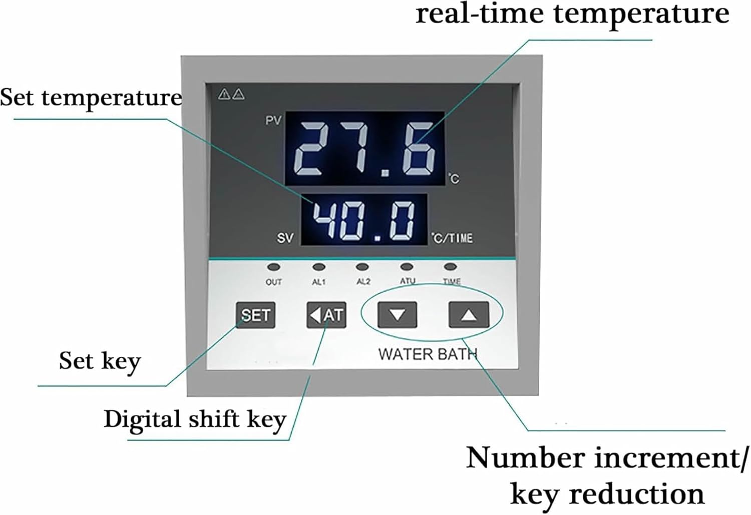 Characteristics:Digital temperature visualization and controlThe screen shows the real temperature and adjustment point.The temperature is controlled by an PID controller.It also has a timing function.304 stainless steel cavityThe unique molding process, without interface and without welding joints, can prevent oxide and corrosion.SpecsName: Smart temperature water bathFour holes:Power: 800WInternal size (mm): 300*300*140Temperature range: Ambient temperature ~ 99.9 (℃)Temperature fluctuation: 0.1 (℃)Temperature Control Method: Electric heatingVoltage: 220 v/60 HzInner wall material: 304 stainless steelScope: Medical Scientific Research, Chemical BiologyPackage Includes1*Adjustable ring cover1*Instructions1*Waterproof support1*Power cable