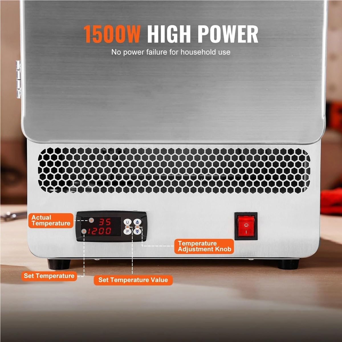 Whether you're a seasoned jeweler or an ambitious beginner, this furnace grows with you. It combines professional precision with straightforward operation, so you can safely melt metal, fire wax, or sinter metal clay right from day one. No steep learning curve—just reliable, beautiful results.Specifications:Name: Electric Kiln FurnaceMain Materials:201 Stainless Steel + QuartzMax Power: 1500WMax Furnace Temperature:2192℉/1200℃Time to Reach Max Temp from Room Temp: 34-38 MinutesFurnace Inner Space:6.10 x6.10 x5.51 inch/155 x155 x 140 mmDimensions:13.0 x10.04 x 18.90 inch /330 x 255 x 480 mmWeight: 38.58 lbs /17.5 kgPackage Included1xDesktop Melting Furnace Main Unit 1x Power Cord1 x Heat-resistant Gloves 1xCrucible Tongs 1xUser ManualNotes:1. Due to manual measurement, 2-3cm deviation is allowed.2. Different monitors have different calls, and the product color is subject to the actual product