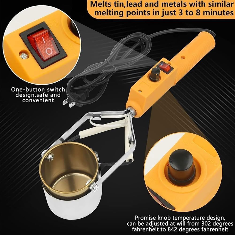 Features:Using high quality stainless steel solder pot, with a high temperature, acid, abrasion resistance, non-stick tin, tin oxide surface less so; tin less, less power consumption, energy saving, long lifeWith a small ladle is the liquid metal into the moulds in easilyEasy to use, thermal effects, tin melting fastSpecification:Name:Portable Lead Melting PotMaterial: Stainless Steel + PlasticMax. Temperature: 450℃Power: 200W/300W/400W/500WMolten Solder Time: 3-8minCapacity: 400g/600g/1000g/1500gPot diameter:45mm/50mm/60mm/70mmDepth:58mm/60mmPackage List:1*Tin melting pot1*instruction manualNote:1. Due to different monitors and lighting effects, the actual colour of the item may differ slightly from the colour shown in the picture.2. Please allow 1-2cm deviation due to manual measurement.