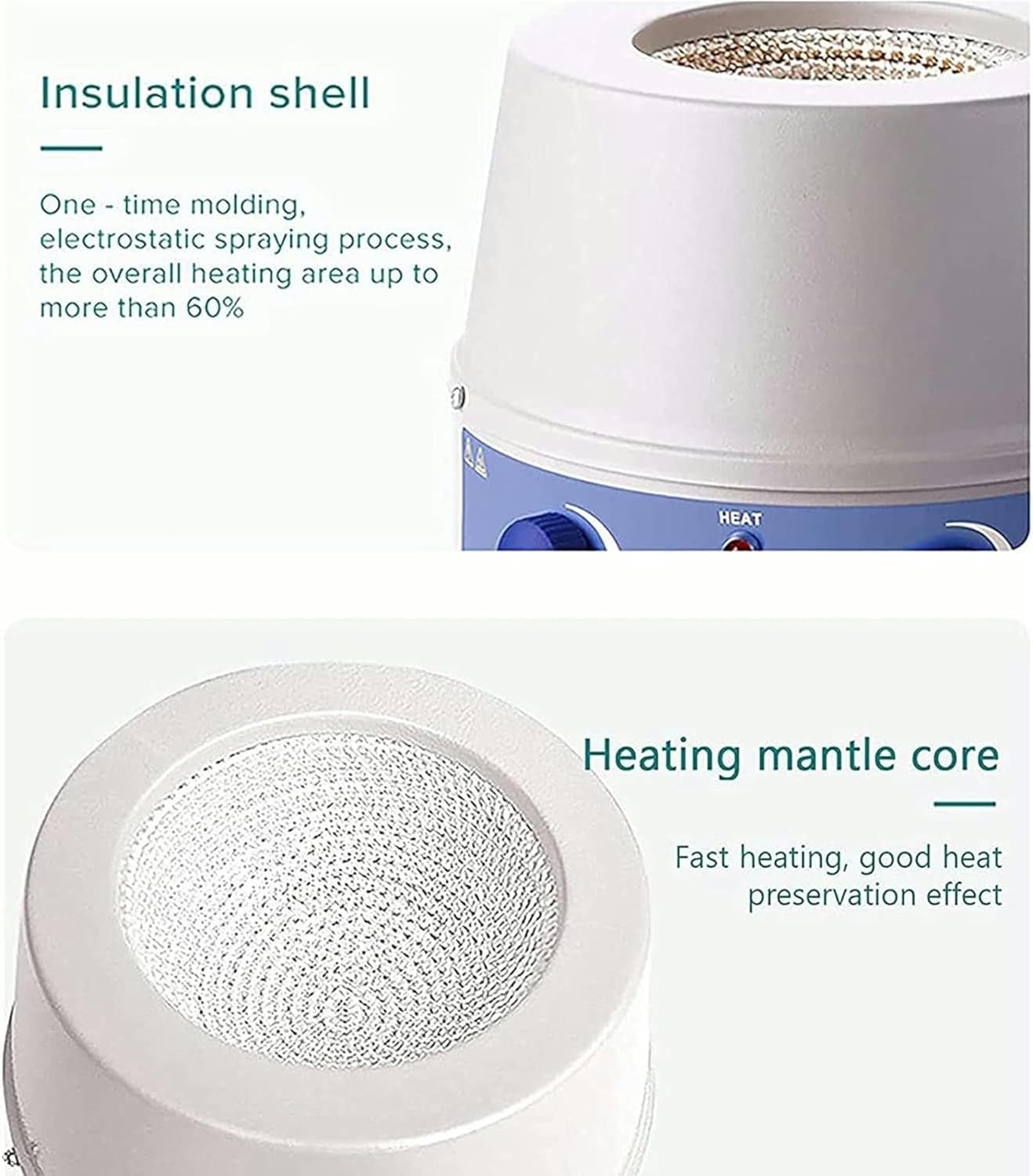 Characteristic:Double knob controlContinuous speed regulationStrong magnetic force, stable agitationIt can be heated, controllable temperature, high temperatures resistanceProduct parameters:Product name: Electric heating mantle with magnetic heating agitationDigital screen: NoneHeating power: 100-2400WApplicable scene: laboratoryControl Method: Double buttonFunction: Heating, magnetic agitationCapacity: 100 ml, 500 ml, 1000 ml, 2000 mlHeating temperature: Ambient temperature at 380 ℃Package Included:1 magnetic mixer1 power cable1 stirring bar1 manualNote1. For manual measurement, allow a deviation of 1-20 mm.2. Due to the difference between light and screen, the color of the article can be slightly different from the image.