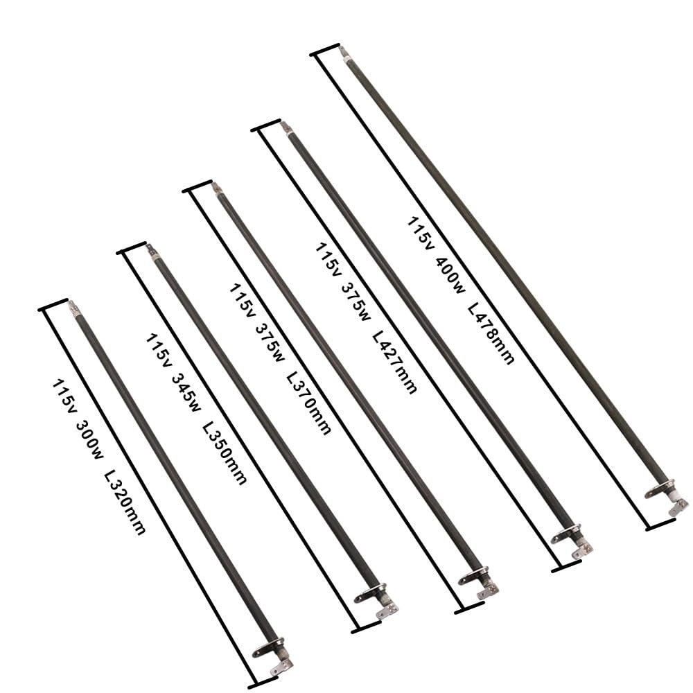 Air Heating Element 110v-115v Electric Straight Tubular Heater with Metal Sheet By Annealing SUS304 Oven /Stove /SaunaDescription:Product Name:115V Tubular Heating ElementMaterial: SUS304Wattage: 300W/350W/375W/400W/500WVoltage: 110V-115VLength:320mm/355mm/370mm/427mm/478mmTube Length: 288mm/324mm/336mm/394mm/443mmTube Diameter:6.6mmPackage: Electirc Heating Tube*1Application :Electric Oven/Household/Appliances/Kitchen AccessoriesOrigin : Mainland ChinaType : Electric Water Heater PartsProduct Name : 115V Tubular Heating ElementMaterial : SUS304Wattage : 300W/350W/375W/400W/500WVoltage : 110v-115VAll Length : 320mm/355mm/370mm/427mm/478mmTube Length : 288mm/324mm/336mm/394mm/443mmTube diameter : 6.6mmApplication : Electric Oven/Household Appliances/Kitchen AccessoriesPackage : Electirc Heating Tube*1