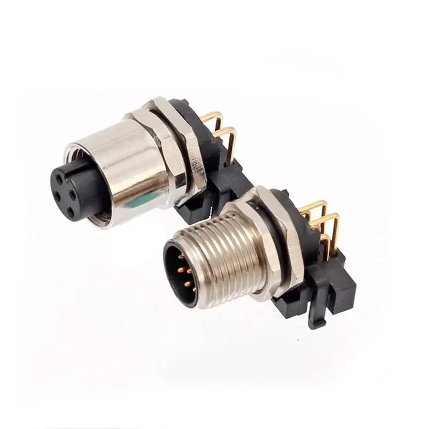 Cylindrical ConnectorsM12 2 3 4 5 6 8 12Pin PCB Curved Needle Flange Socket Panel Mount Plug-in Waterproof Sensor Connector Adapter Earthing