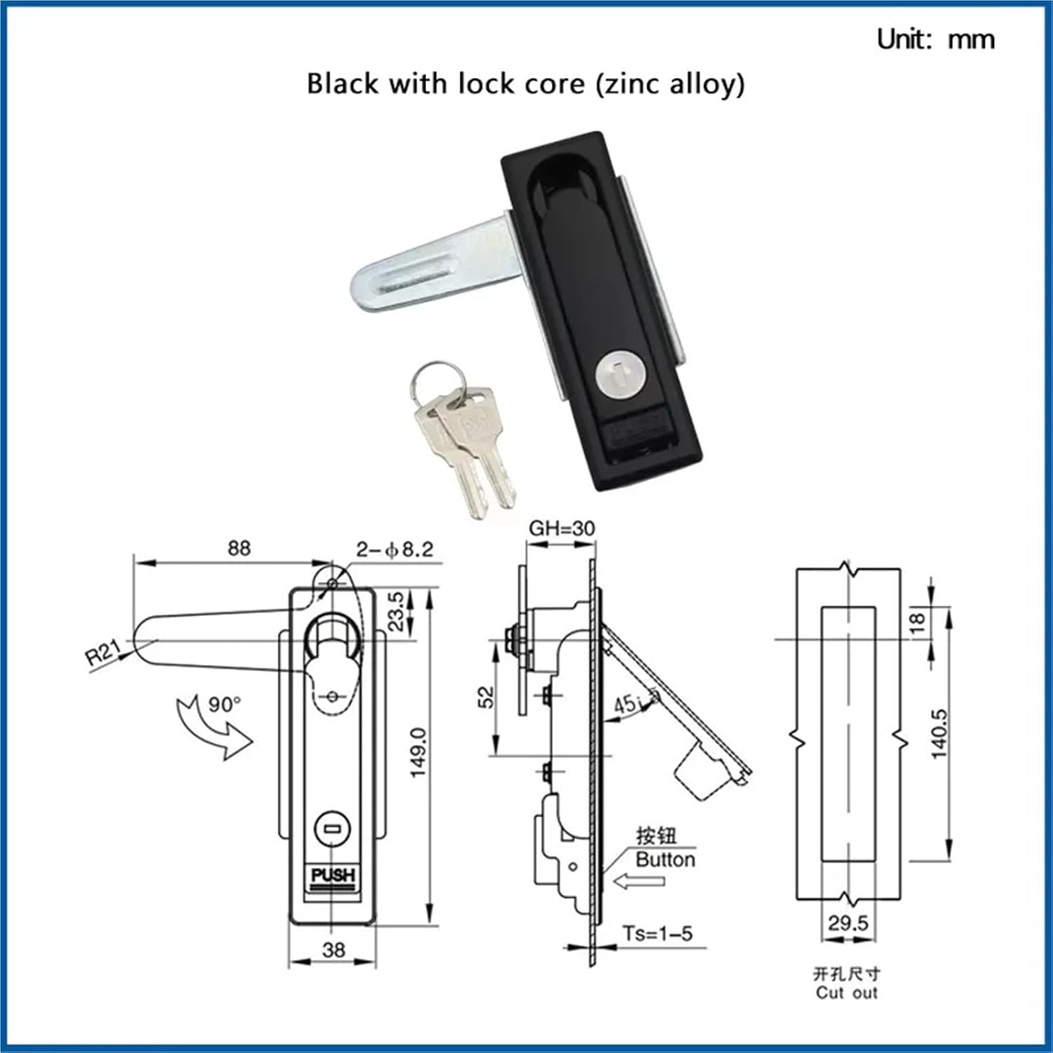 Industrial MotorsFlat Lock Zinc Alloy Charging Pile Face Mask Machine Lock Electrical Control Cabinet Distribution Box Outdoor==========Keys Included : YesApplication : EntranceMaterial : Zinc Alloy