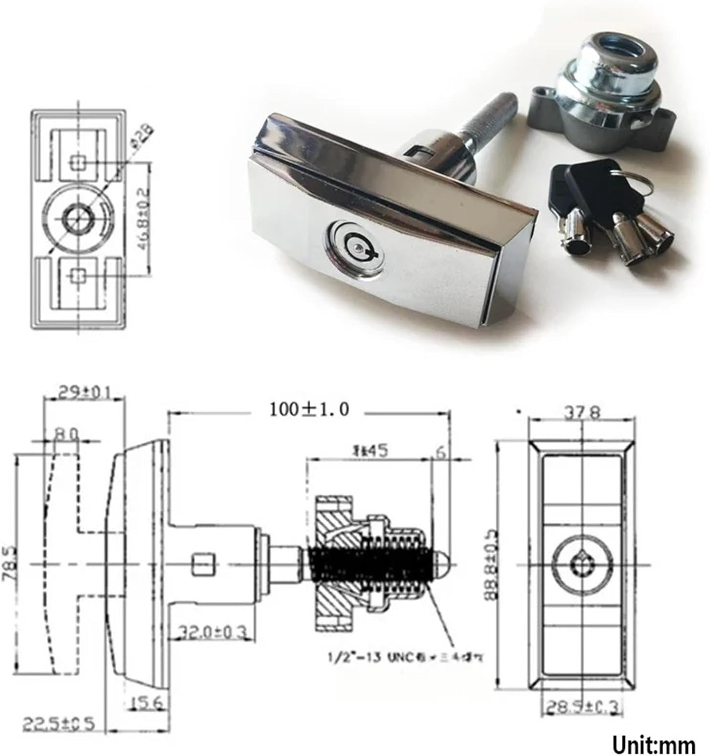 LatchItem:2701Lock Type: LockKey Type:Tubular KeyMaterial:Zinc AlloyFinished:Mirror treatment & Bright ChromeKey combinationOver 5000SizeLength*Width):172mm*50mmNet Weight:691g / PCSPackage:CartonAccessories:1,Cylinder Nut*1PCS Material: Steel, Finished: Zinc2,Key*2PCS Material: Steel, Finished: Nickel