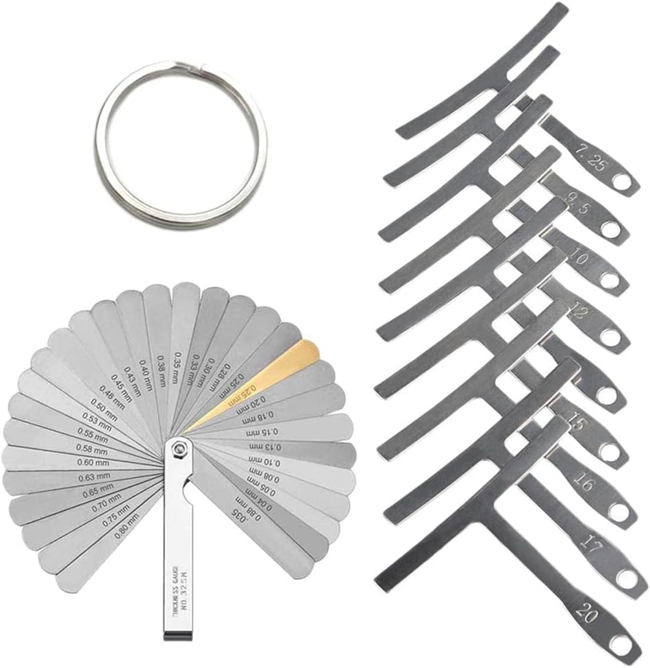 Description: - 32- Feeler Gauge: 32 hardened, tempered steel , measurement from 0.0015 inch (0.038 mm) to 0.035 inch (0.889 mm), it is a guitar common spacing distance measure tool, chrome plated main shaft for easy clean up and professional look. - Each piece of stainless steel piece of the feeler gauge has a marked scale for easy measurement.The metric and scales assist you in measuring the spacing. - Gauge: A set of 9 understring gauges including 7.25"-9.5"-10"-12"-14"-15''-16"-17'' and 20" . - The high precision on these make the set up of the saddles a piece of cake and with great accuracy. Also the fact that both sides are arced make it great also for determening the fretboard and nut . - These two guages can be applied to measure all kinds of electric guitar, electric bass, acoustic guitar, acoustic guitar, electric box guitar fretboard and more.Specification: - Material: Stainless SteelPackage Includes:1 Piece Feeler Guage1 Piece Guage1 Piece Keyring