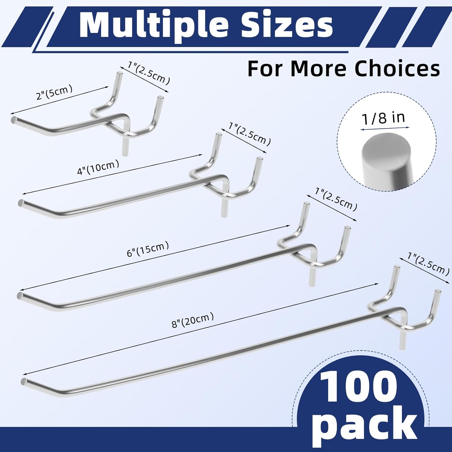 | Included Components | 30 pieces of 6-inch pegboard hooks, 30 pieces of 8-inch pegboard hooks, 40 pieces of 4-inch pegboard hooks |