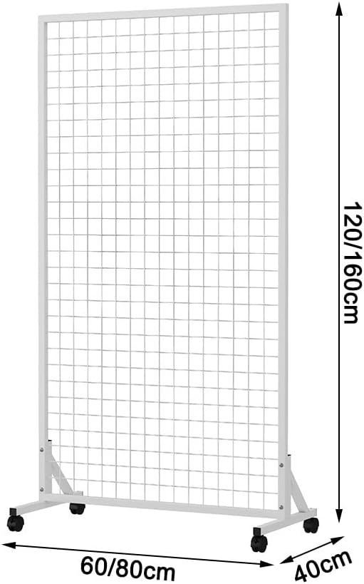 Our wall grid display is crafted from sturdy square tubing, ensuring it stands up to the demands of retail environments. This grid panel display is perfect for product exhibitions at trade shows, craft fairs, and vendor events. Its innovative grid design allows for effortless installation and rearrangement of items, making it a versatile choice for various display needs.**Product Specifications:**- **Product Name:** Grid Panel Tower- **Material:** Cold Rolled Steel- **Dimensions:** Available in 60 x 40 x 120 cm, 60 x 40 x 160 cm, and 80 x 40 x 120 cm- **Shape:** Rectangular- **Style:** Modern- **Mounting Type:** Freestanding**Key Features:**1. The high-temperature baked paint finish ensures oxidation resistance, enhancing durability through multiple treatments.2. A reinforced and thickened base provides excellent load capacity, effectively addressing stability concerns during use.3. This display rack is versatile enough for showcasing paintings, hanging small items, floral arrangements, photo walls, or climbing plants.**Package Includes:**- 1 Grid Panel Tower- 4 Universal Wheels for mobility- 20 Metal Hooks (decorative items not included)